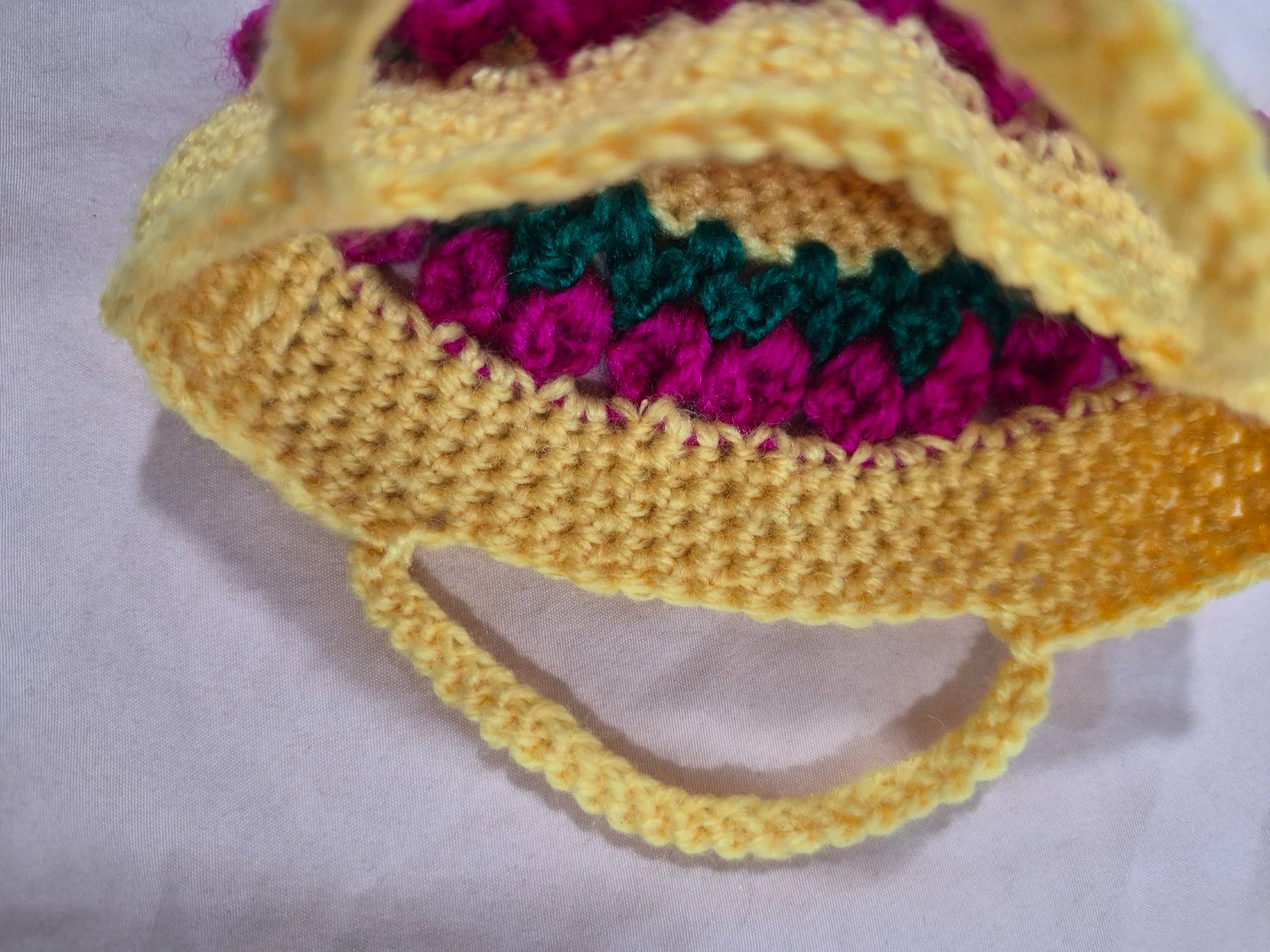 Handmade Yellow Crochet Purse with Pink and Green Flowers