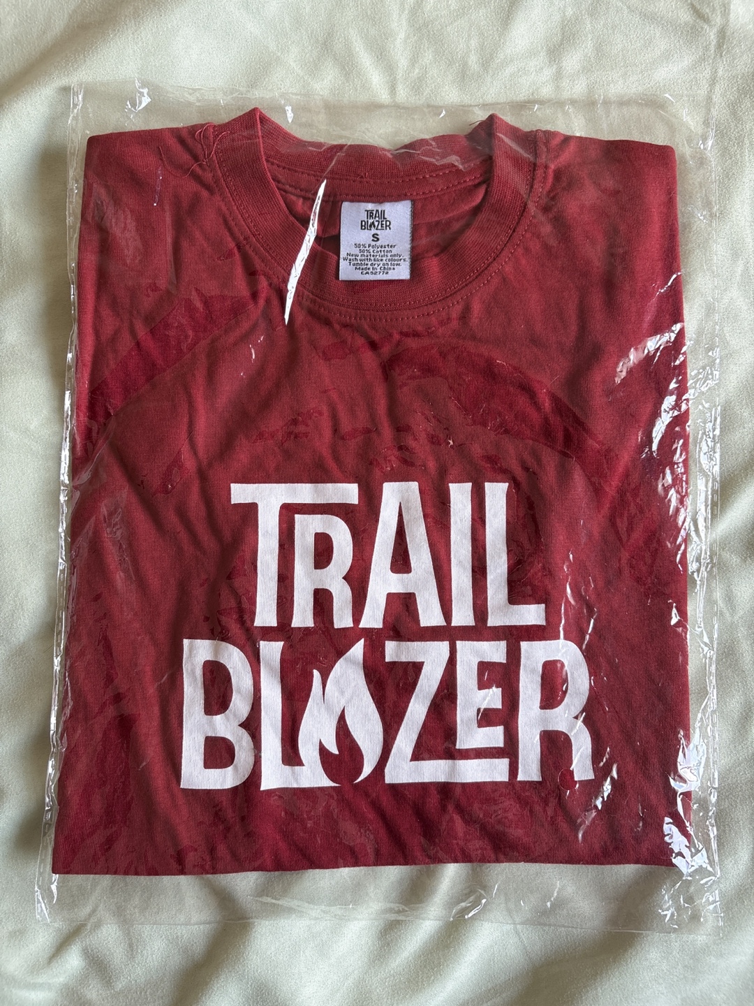 New Trailblazer red graphic tee in size small! The shirt is made of 50% polyester and 50% cotton. It's still in its original packaging.