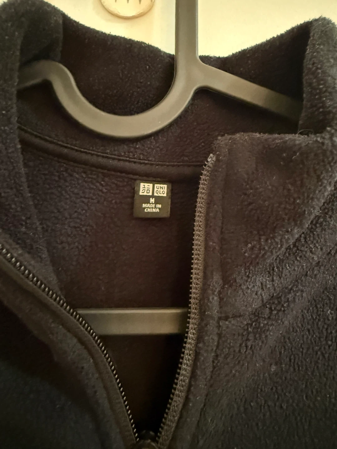 This is a black fleece jacket from UNIQLO. It's a size medium but purchased from Korea so actual size is S. The material is soft and warm.