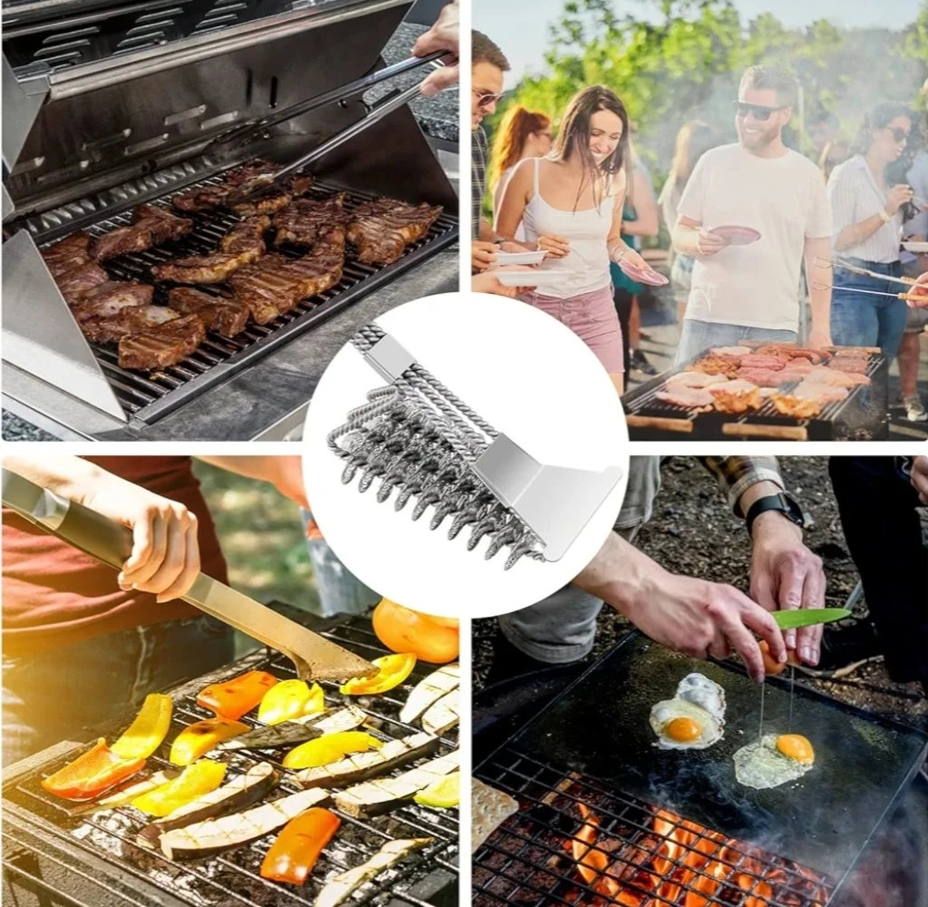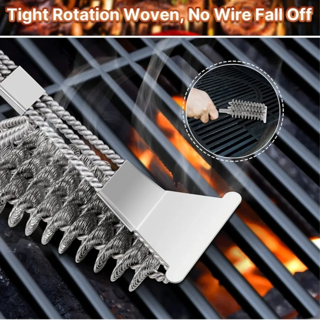 BBQ Grill Brush, 360°Clean Bristle Free Barbecue Brush, Stainless Steel Scraper BBQ Cleaning Brush, BBQ Accessories for Most Stainless Steel, Gas, Infrared, Iron & Porcelain Barbecue Grates