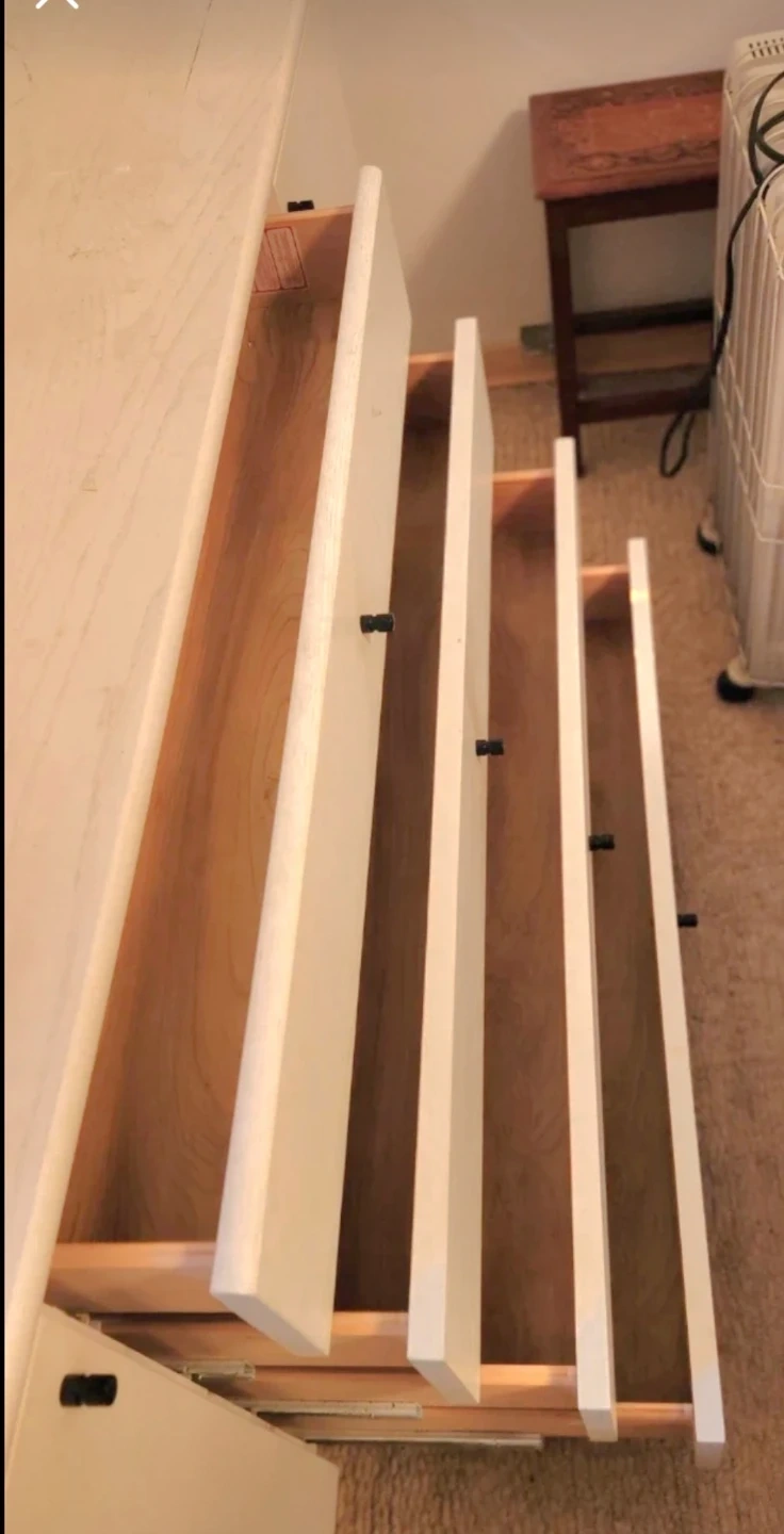 This white sideboard offers ample storage with three drawers and two cabinet sections. It's made of wood and has a clean, modern design. Perfect for organizing your living room or dining area!