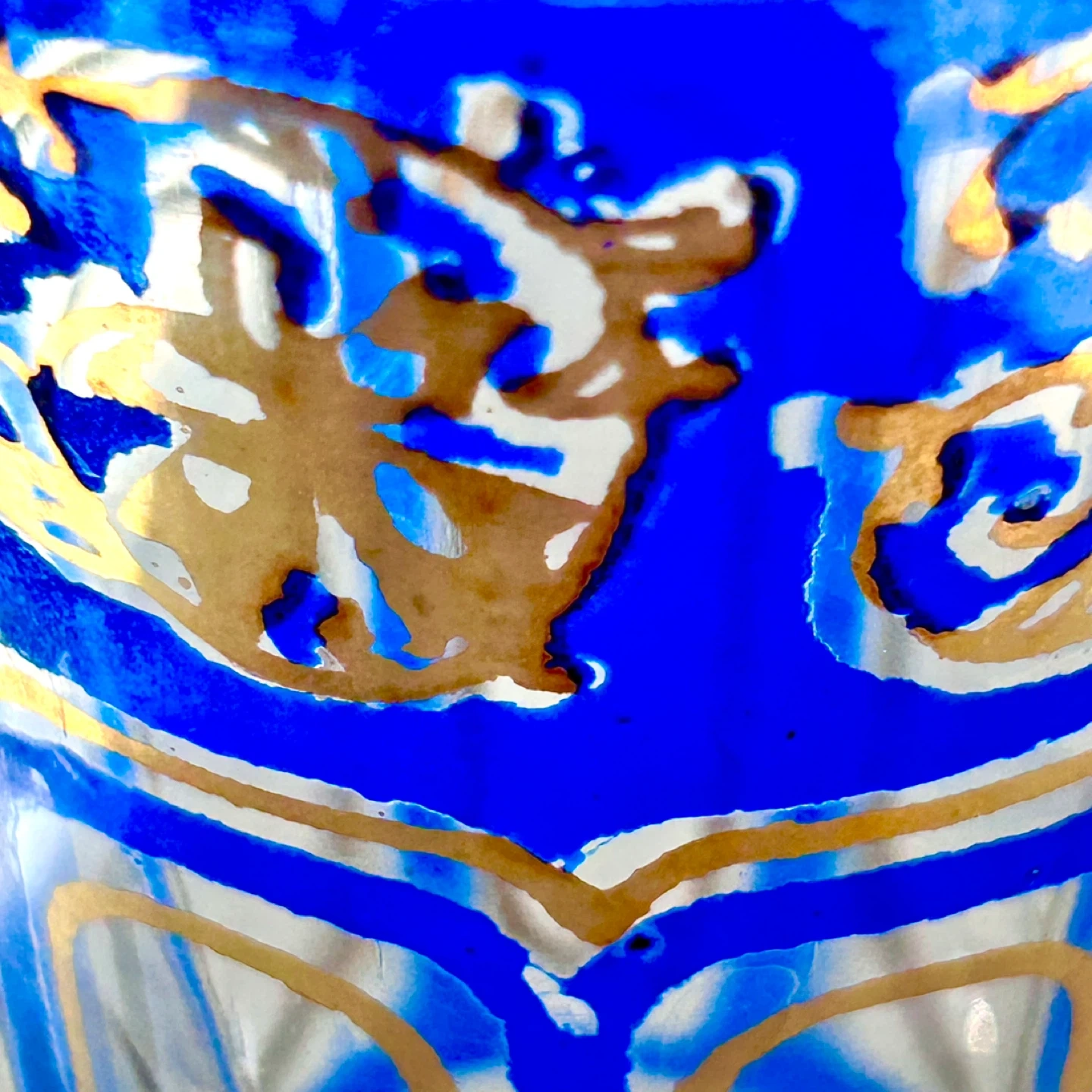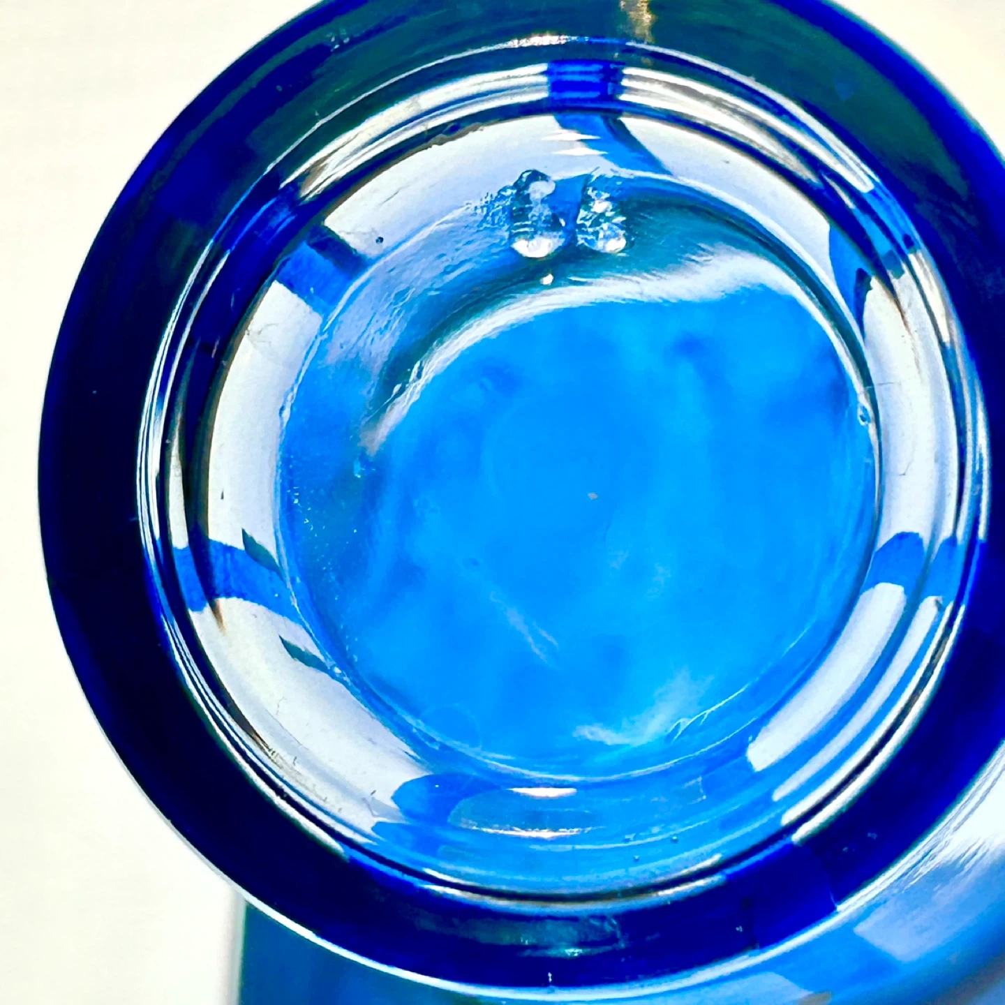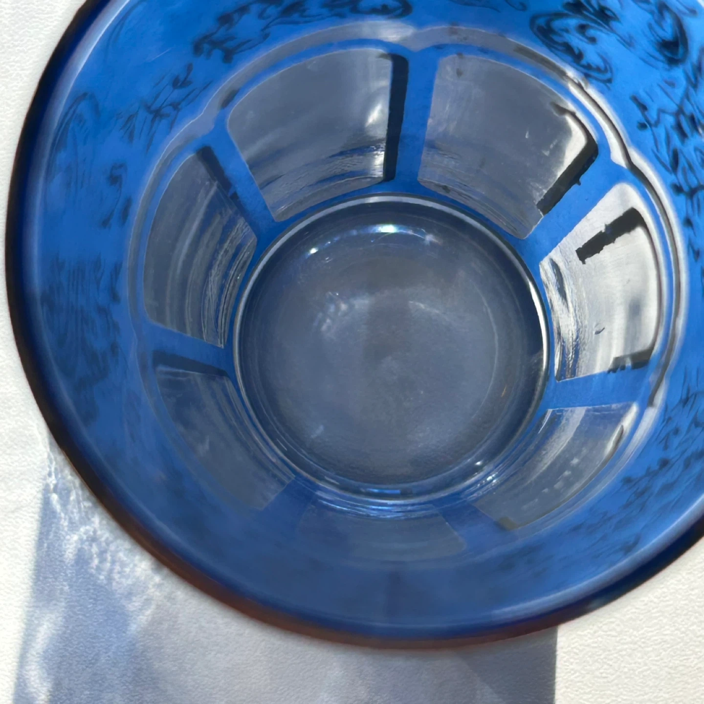 • Materials: Clear glass with cobalt blue overlay and hand-applied gilt enamel