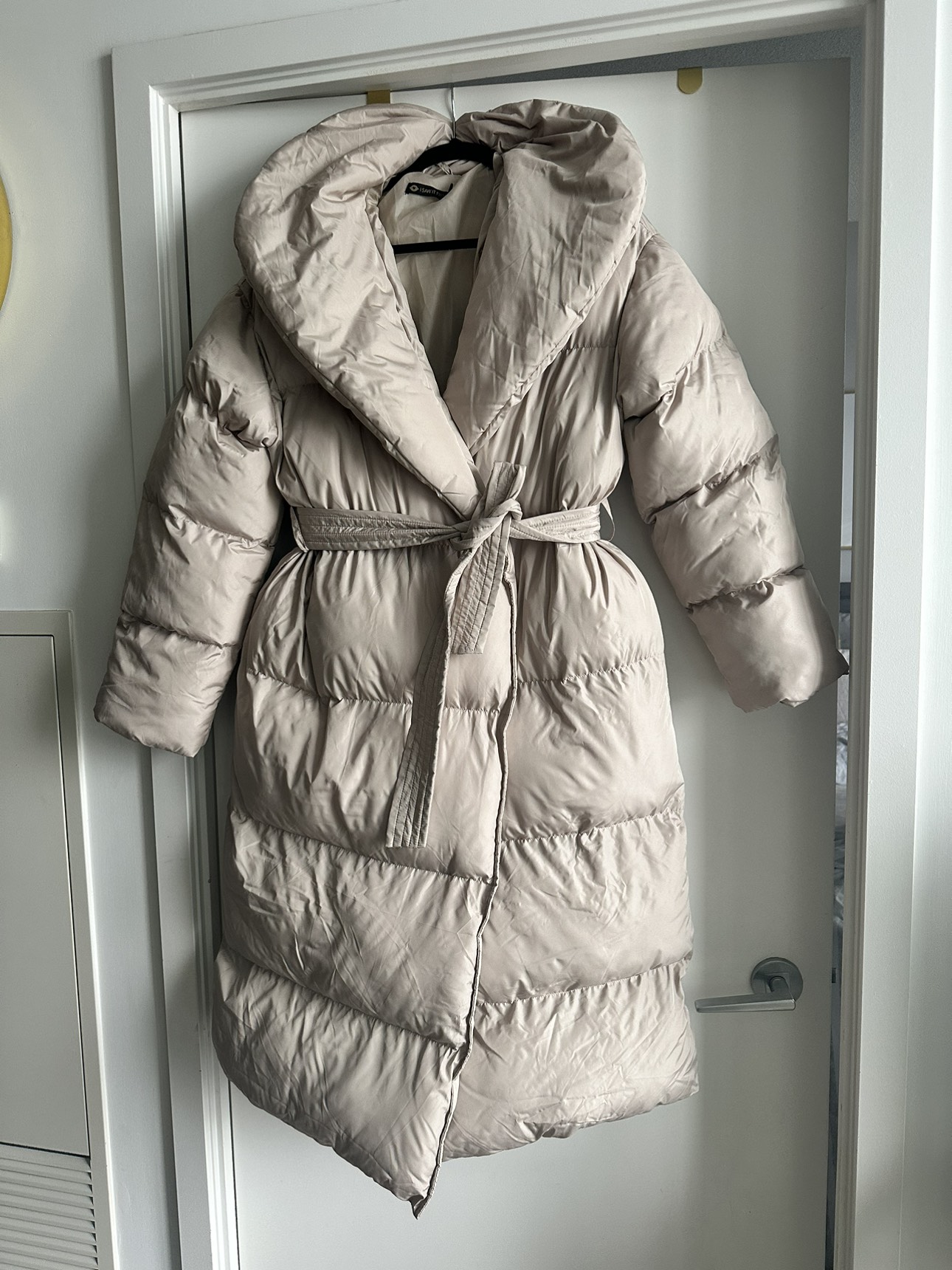 584Excellent condition. Oversized - Size US 4 but can fit to US 8 (M-L) with the waisted belt attached. Cosy and super warm.