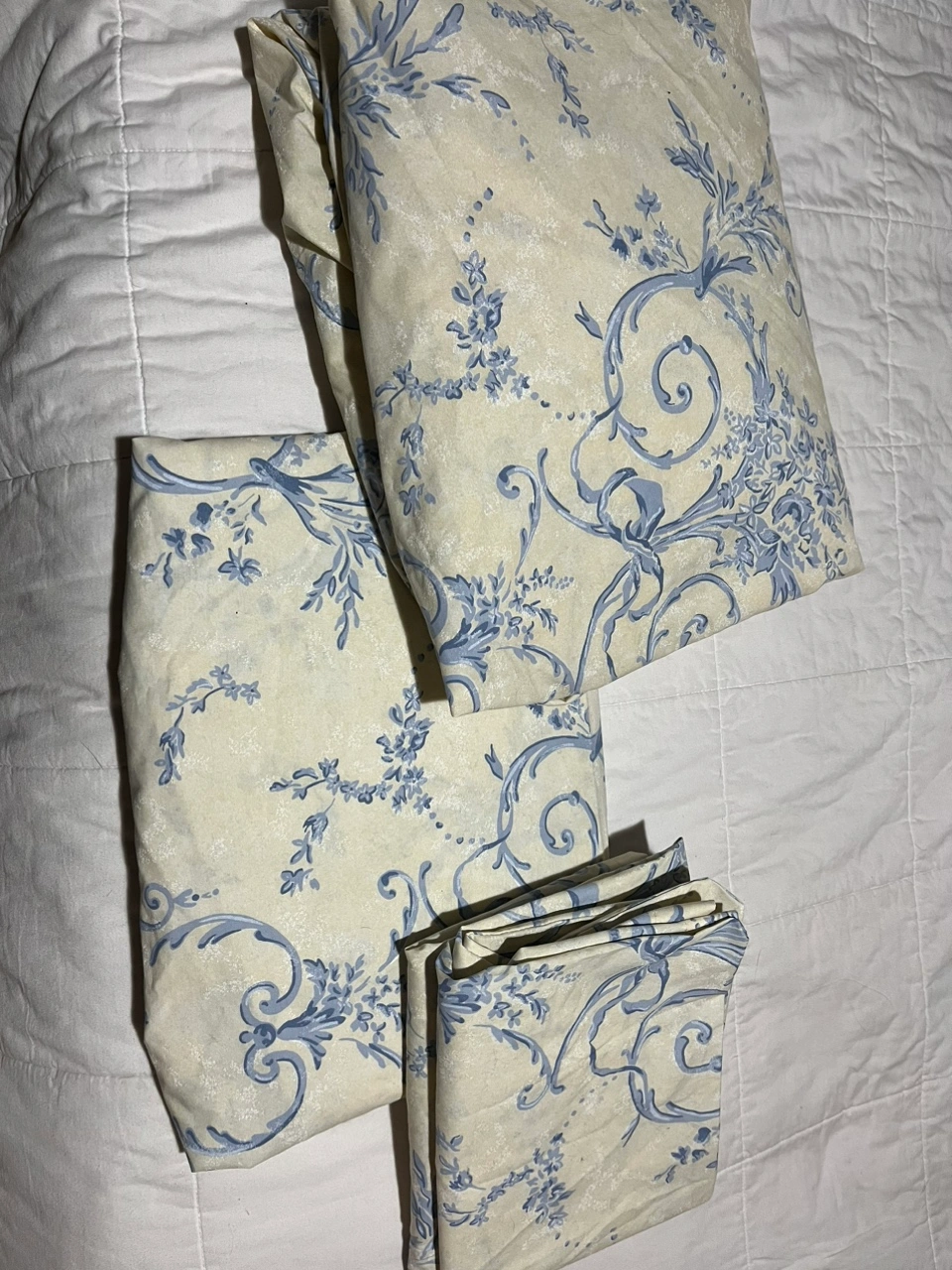 Beautiful sheet set with folded sheet, straight sheet and 2 pillow cases. Used only once - doesn’t pass my household’s neurodivergent tactile test. Washed and in perfect condition. Pick up near Coxwell and Gerrard.