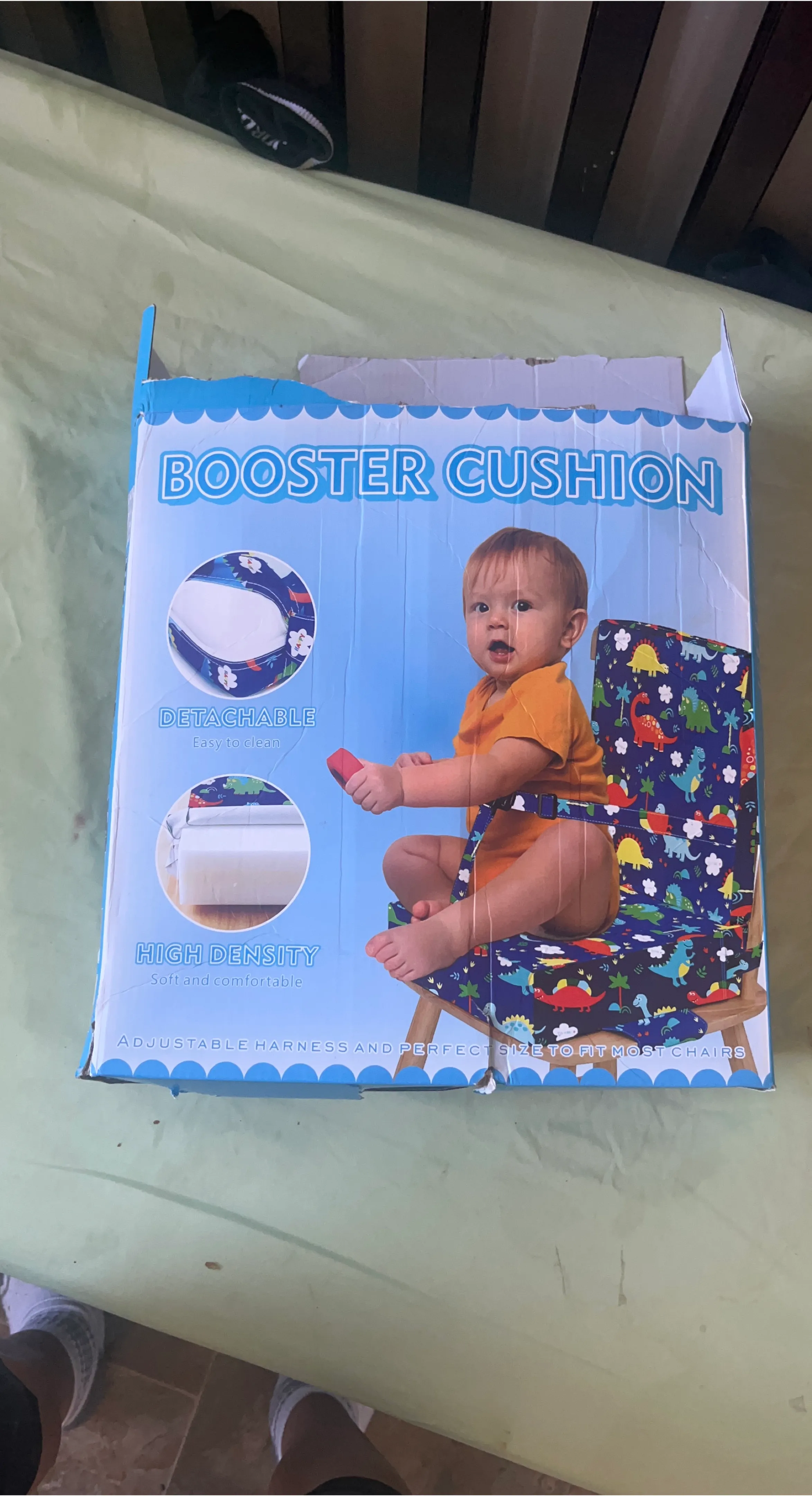 Selling a booster cushion! It features a detachable design that's easy to clean and is made with high-density materials for a soft and comfortable feel. It also has an adjustable harness and is the perfect size to fit most chairs