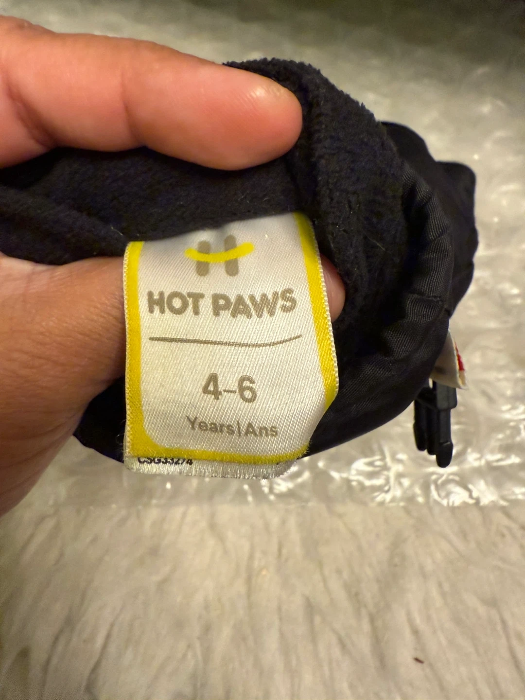 Hot Paws kids gloves, perfect for keeping little hands warm during the colder months! These gloves are in great condition and are size 4-6 years. They feature a secure buckle closure and a grippy palm for extra safety and fun in the snow!