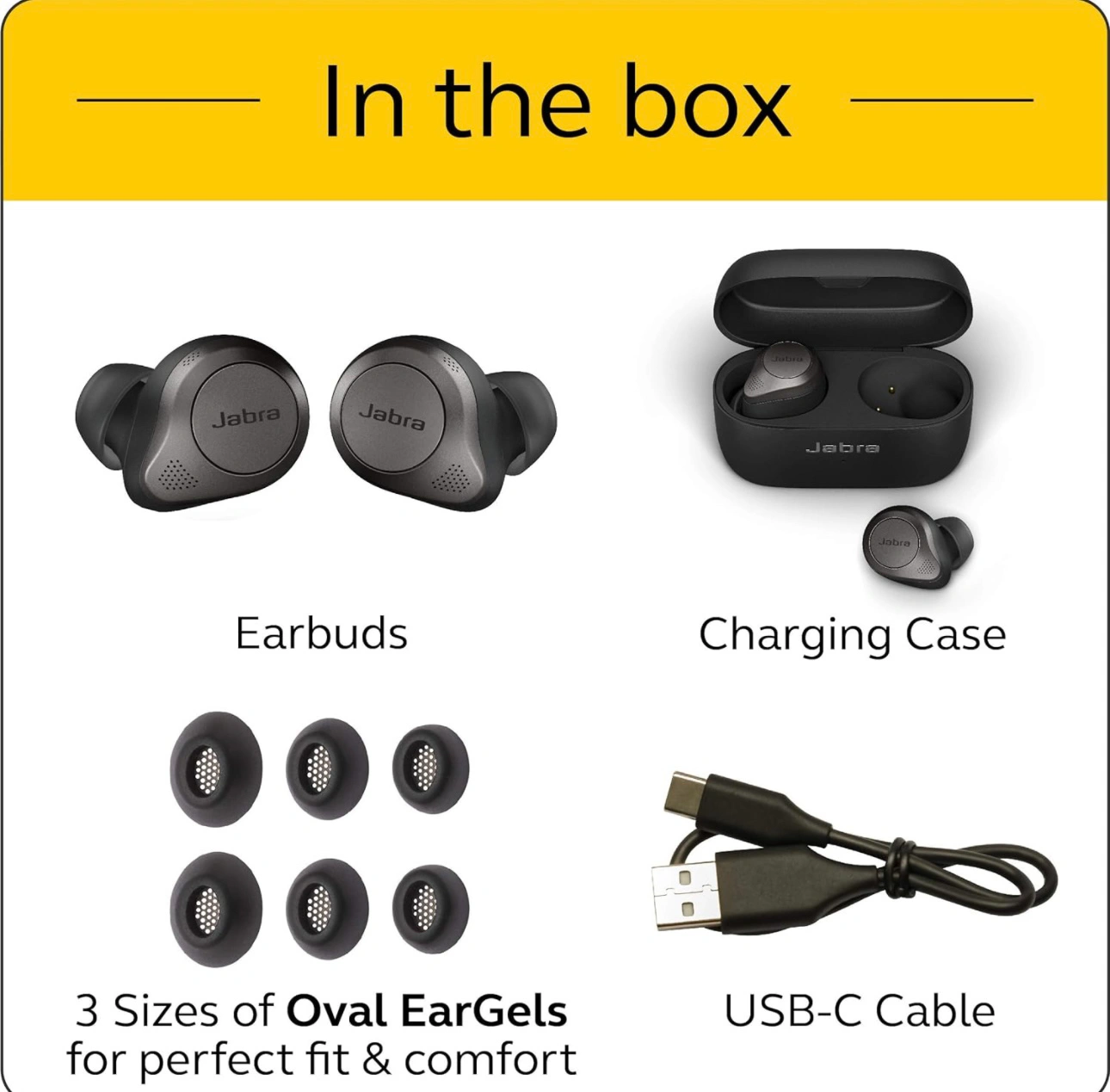 Jabra Elite 85t True Wireless Bluetooth Earbuds, Titanium Black – Advanced Noise-Cancelling Earbuds with Charging Case for Calls & Music – Wireless Earbuds with Superior Sound & Premium Comfort