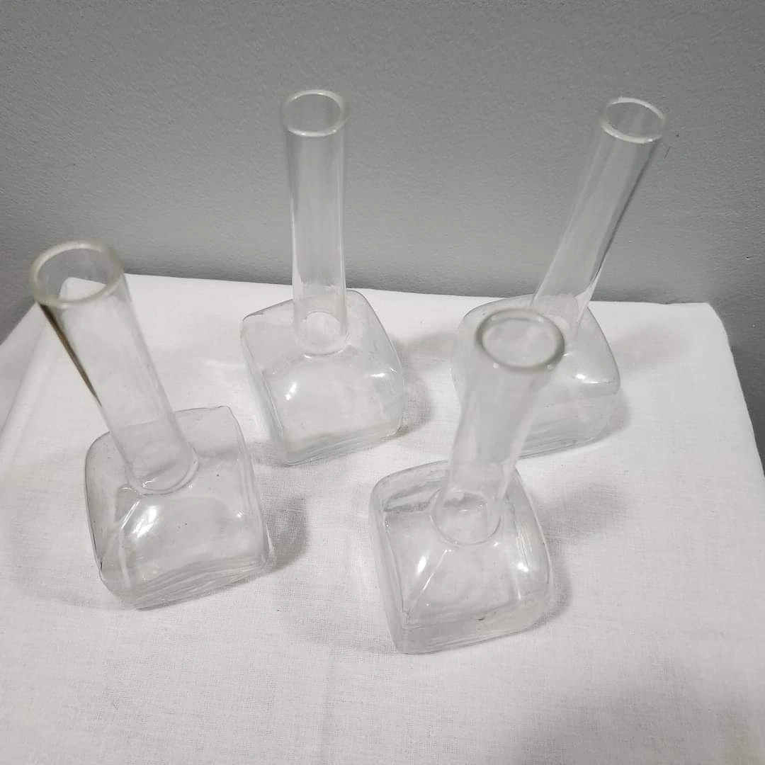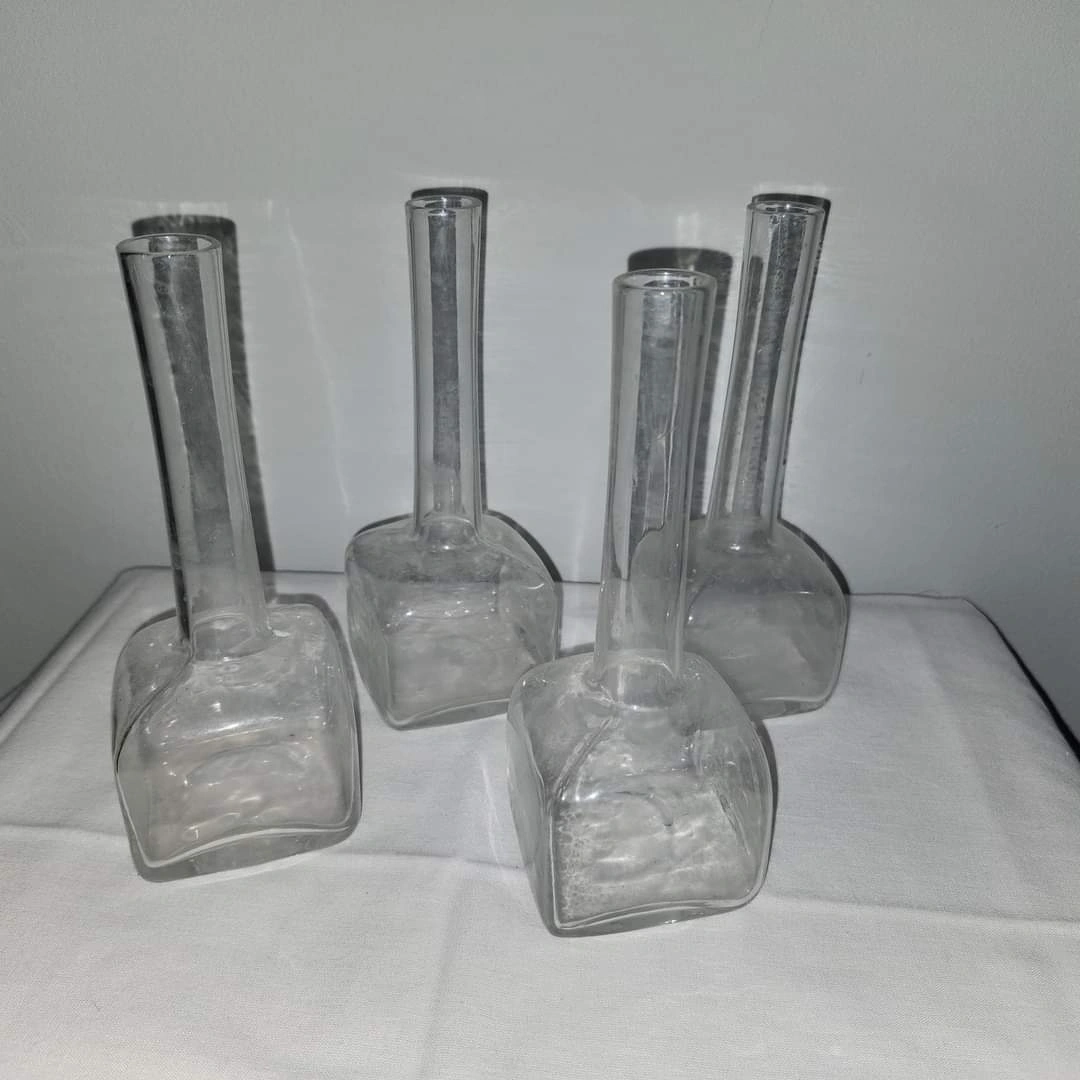Vintage Fluted Clear Glass Bud Vases with Sturdy Square Base. Minimalist & Elegant