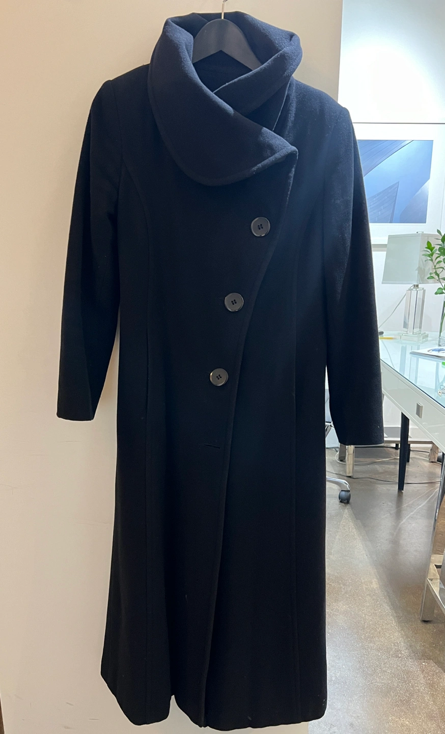 Beautiful wool long winter coat by Lorne’s in Toronto. Nice thick lining for winter dressy occasions.