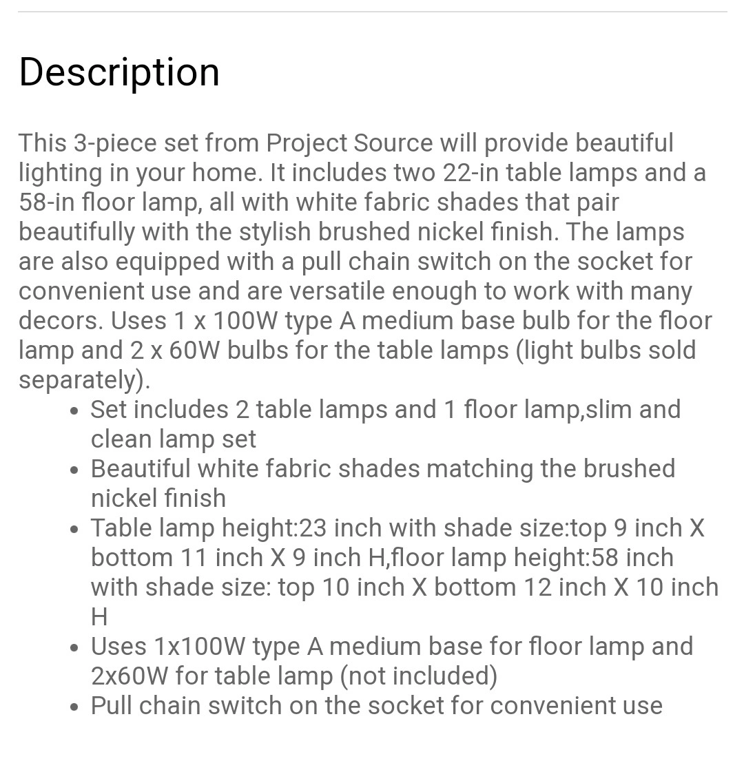 Selling a new floor lamp and matching table lamp. Bought at Rona but doesn't fit my space. Both work perfectly and used for about a week. Floor lamp disassembles if needed. Heavy base, pull chain switch. $76 for both.