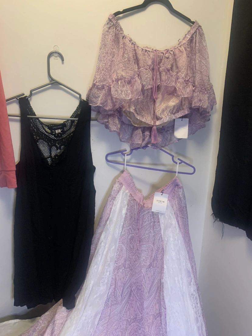1 Shein 2 piece dress with off tha shoulder cropped top and floor length skirt (NWT)
