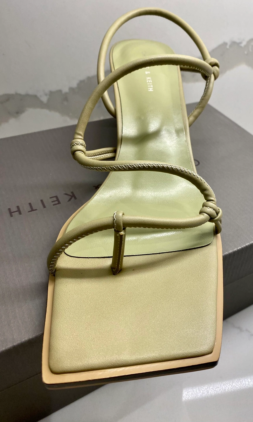 Beautiful, brand new in box Charles and Keith, open toe, sling back, thing style sandals. Squarish front and rectangular heel.