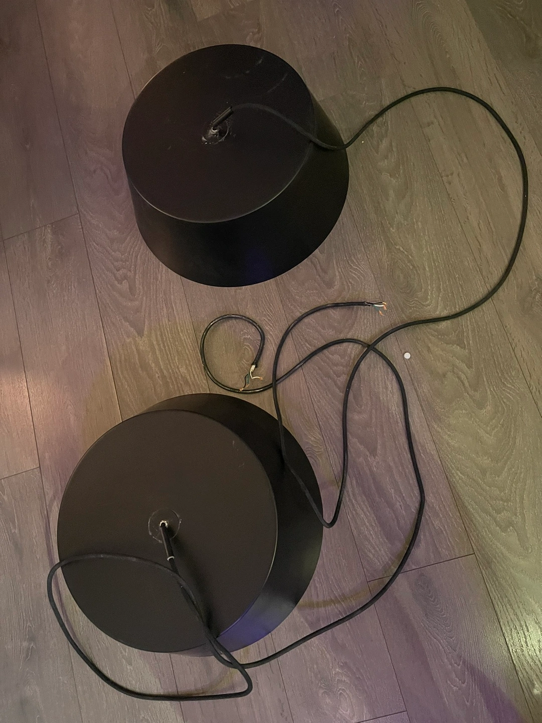 Two free light black fixtures. As is. 18" w x 7" h I'm not sure if they work or have missing parts. Pick up at Adelaide/Sherborne. https://www.eq3.com/ca/en/product/ckvs9udom00003861z682s11o/lighting/lighting/pendant-lamps/bennett-pendant?cjukcqo7a06py0134rg8v9d9n=cjukcqo7q06q00134vtrzdknq