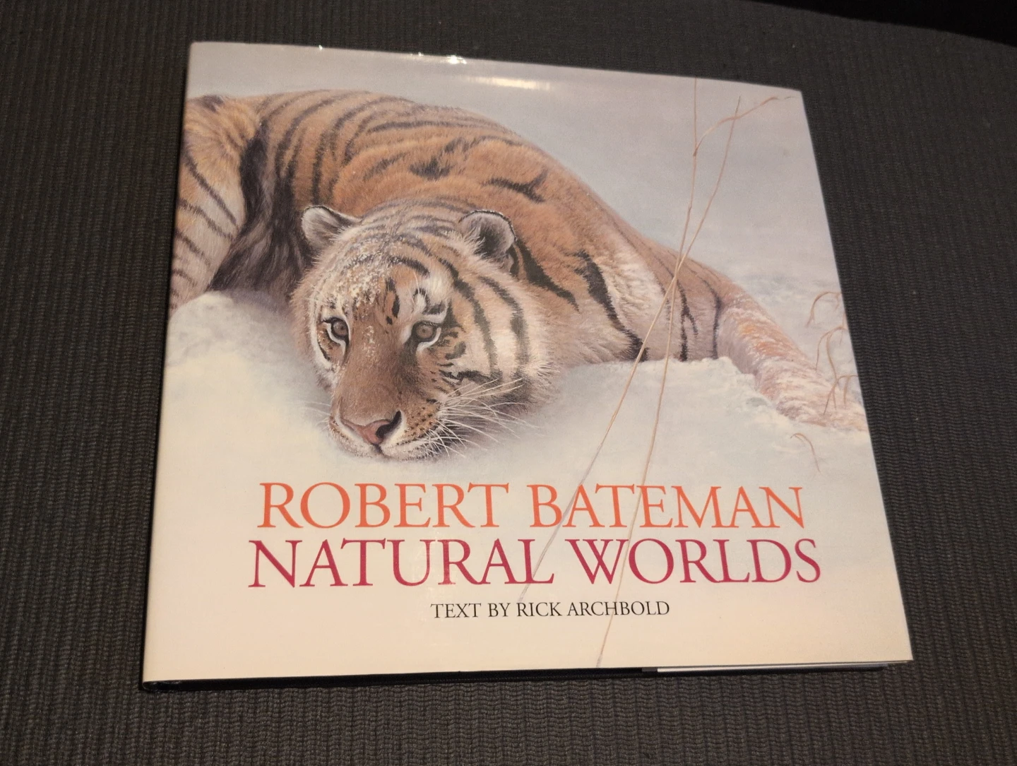 Selling a copy of Robert Bateman's 'Natural Worlds'. This book showcases Bateman's paintings of wildlife and nature. It includes text by Rick Archbold and features depictions of birds and animals in various landscapes.