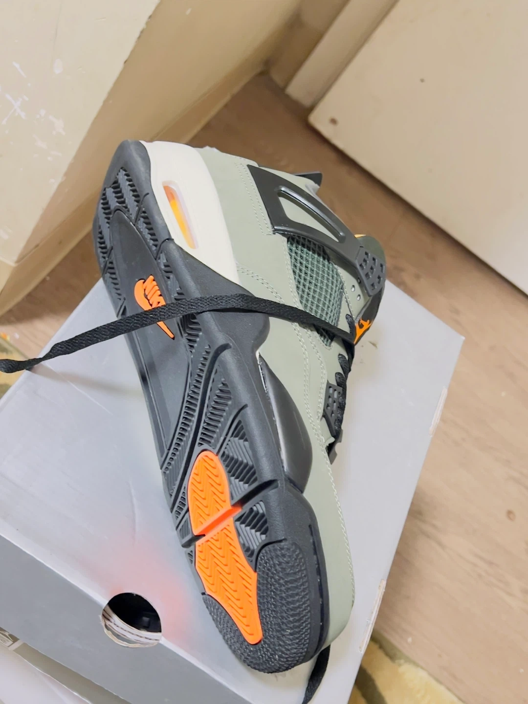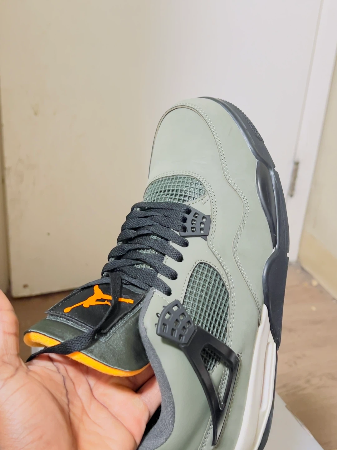 Selling a pair of Nike Air Jordan 4 Retro in the Olive Canvas colourway. These are in great condition and come with the original box. A stylish and comfortable addition to any sneaker collection!