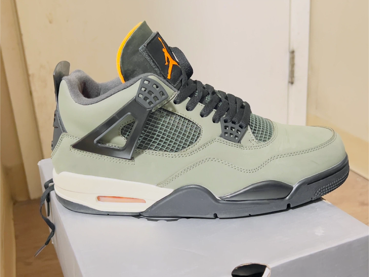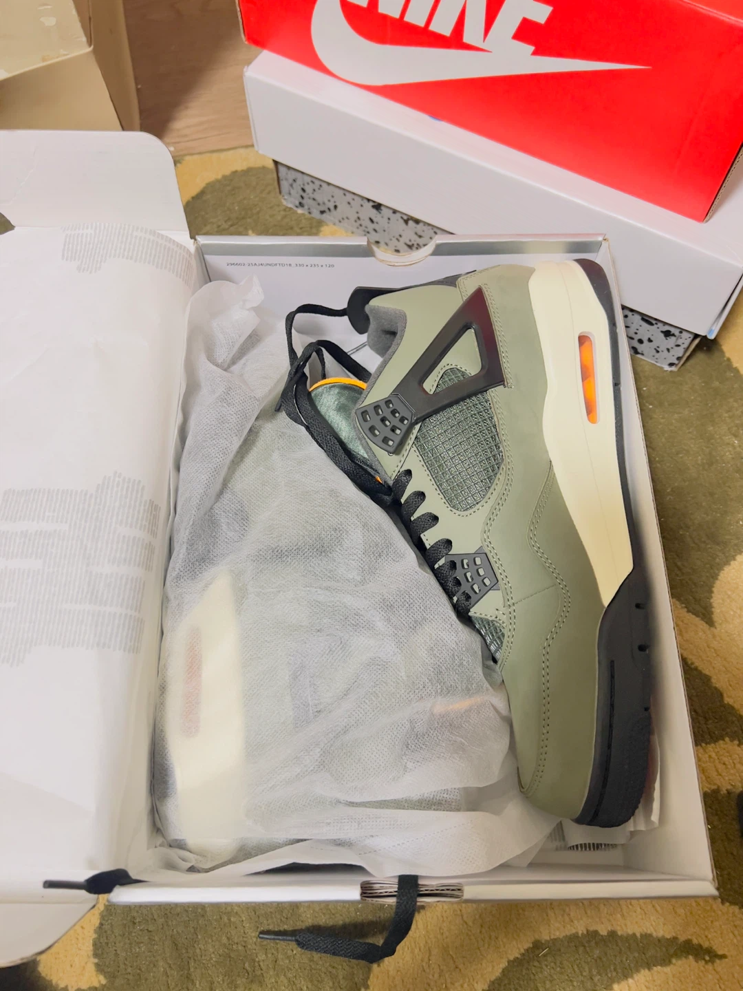 Selling a pair of Nike Air Jordan 4 Retro in the Olive Canvas colourway. These are in great condition and come with the original box. A stylish and comfortable addition to any sneaker collection!