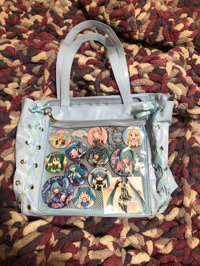 All pins and keychains are included with the Hatsune Miku itabag. If you're interested in purchasing just a few pins or the bag by itself, please send me a message. This item is used but in like-new condition. Cash is accepted, and cashless payment is also an option. Pickup is available curbside.