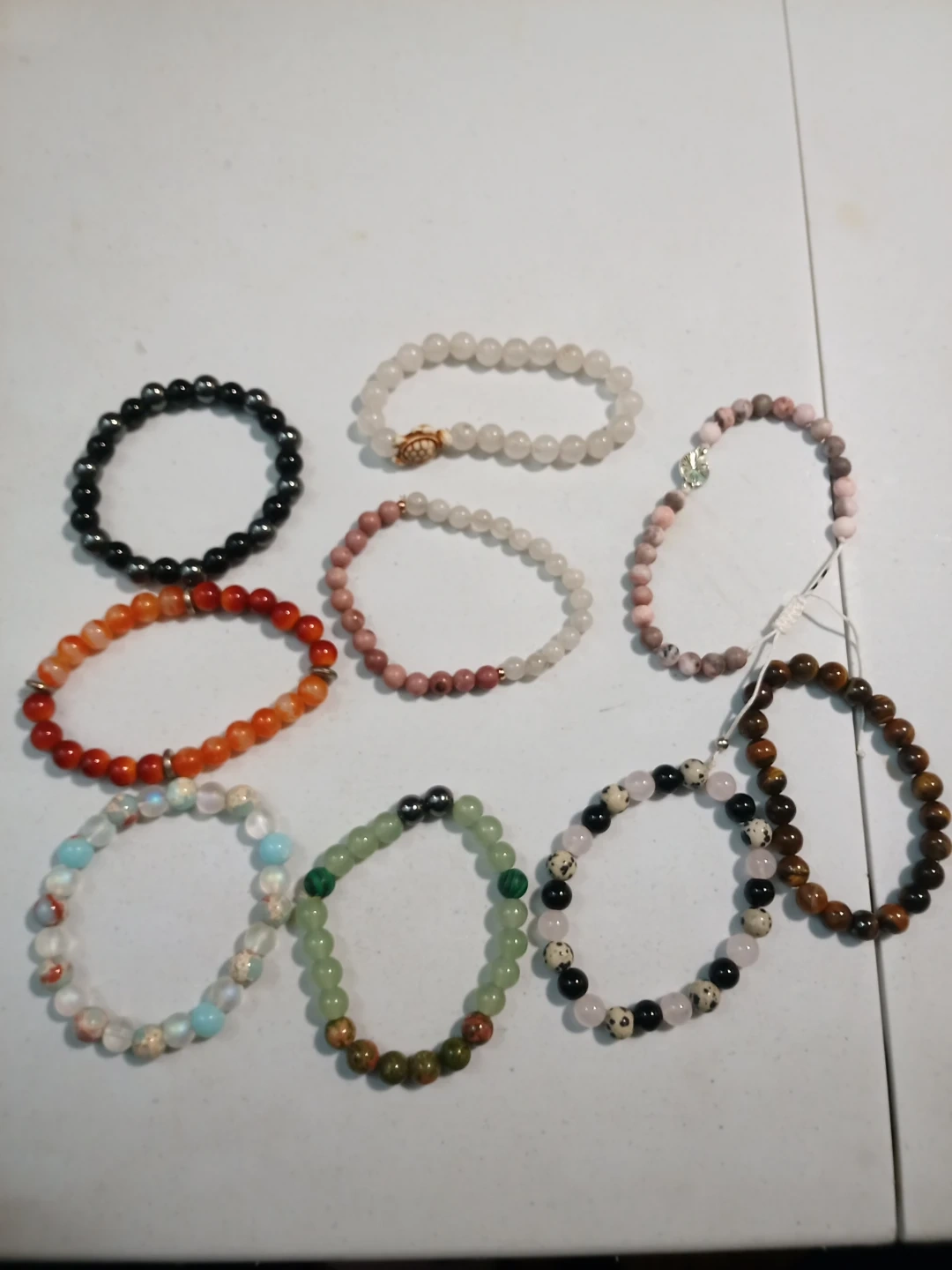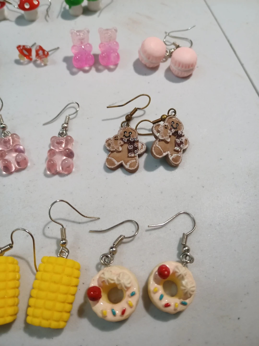 Fun and unique handmade jewelry set! Includes various novelty dangle earrings shaped like food, gummy bears, and macarons, plus a collection of beaded stretch bracelets. Great for adding a playful touch to any outfit!