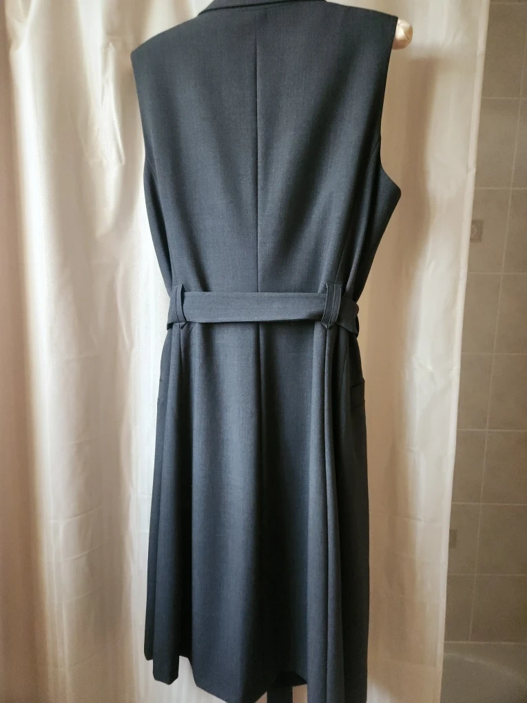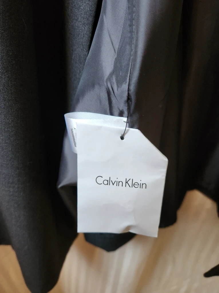 Selling a Calvin Klein sleeveless grey/black dress in size 12. It's in new with tags condition and ready for a new home! The dress features a stylish design with a tie at the waist, perfect for any occasion