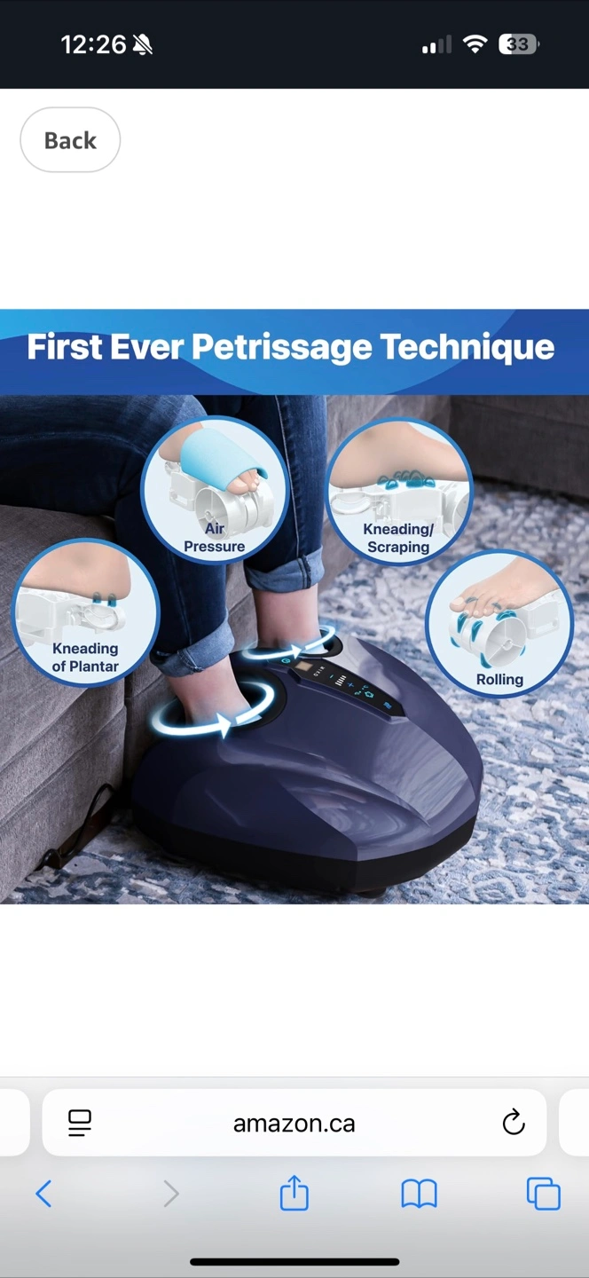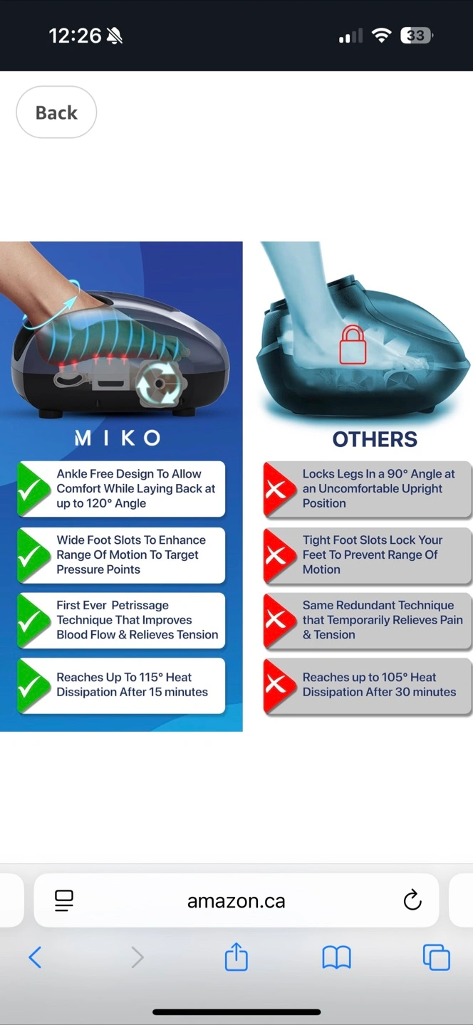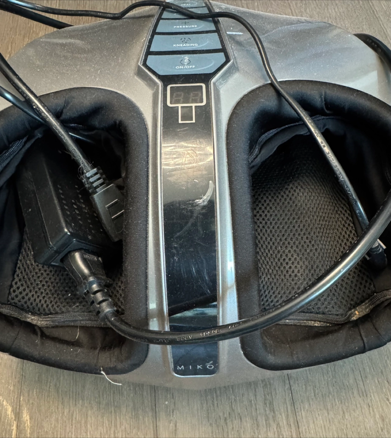 Treat your feet with this Miko Shiatsu Foot Massager! It's designed to alleviate discomfort from plantar fasciitis, neuropathy, diabetes, chronic pain, heel spurs, swelling, recovery, and long work days. The ankle-free design allows for comfort while laying back at up to 120° angle. It also features a wide foot slots to enhance range of motion to target pressure points and the first ever petrissage technique that improves blood flow and relieves tension