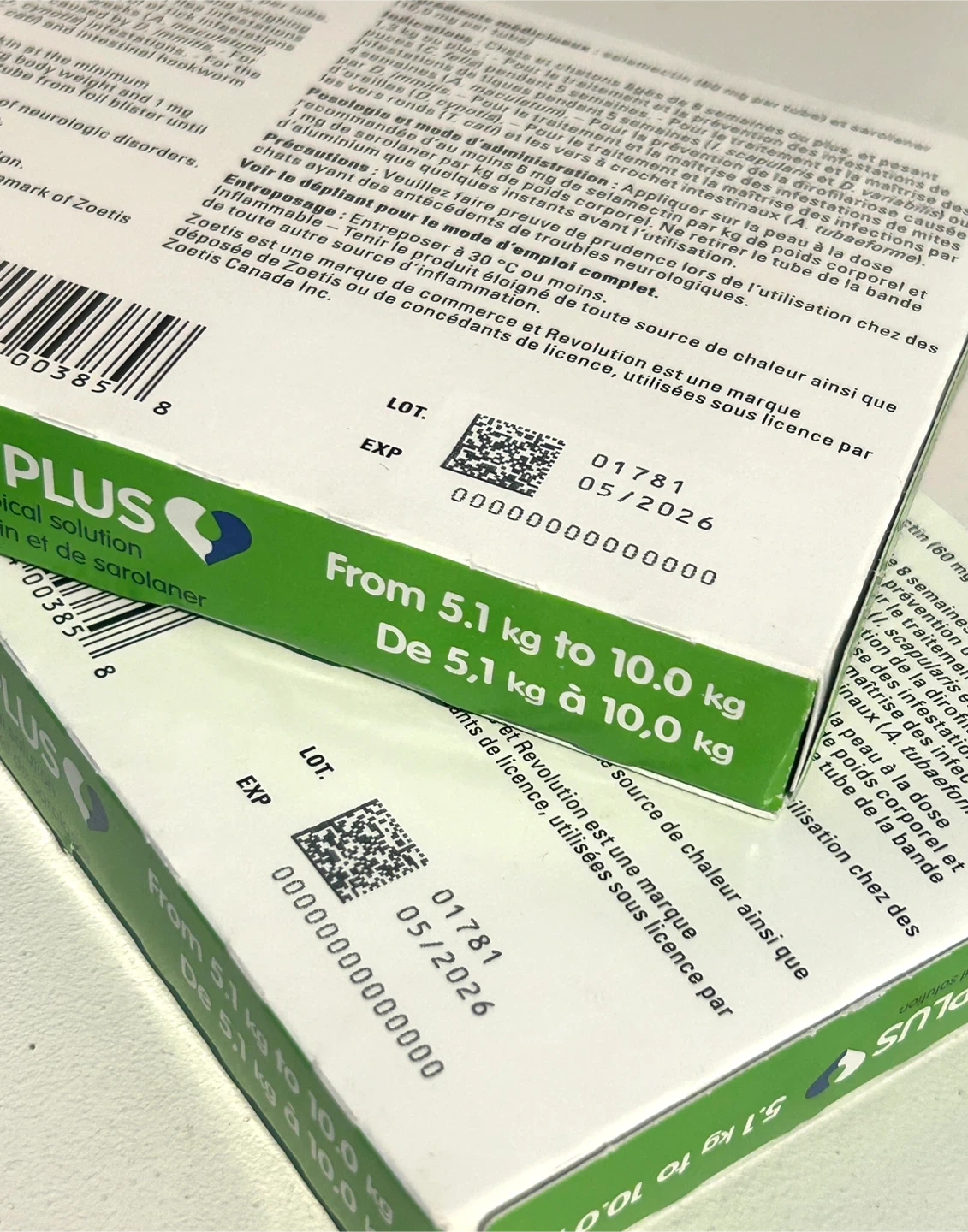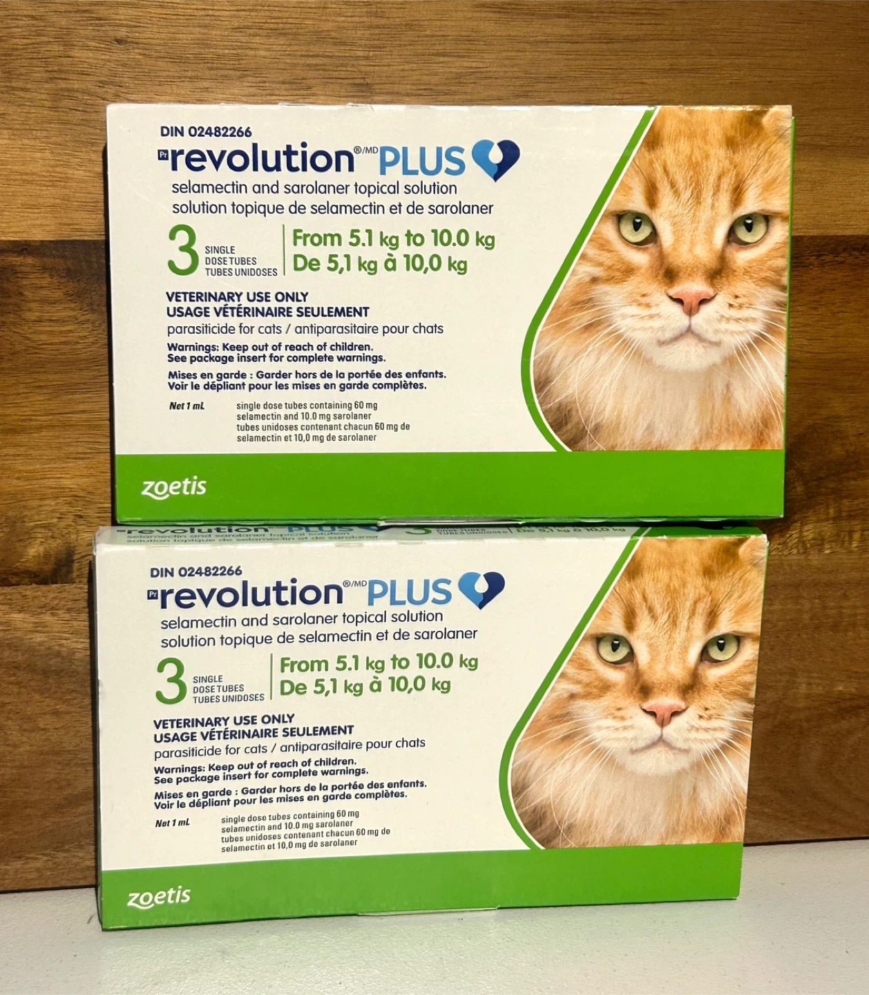 Revolution Plus topical solution for cats weighing 5.1 to 10.0 kg. This is a single dose topical treatment for parasite control. Net 1 ml.