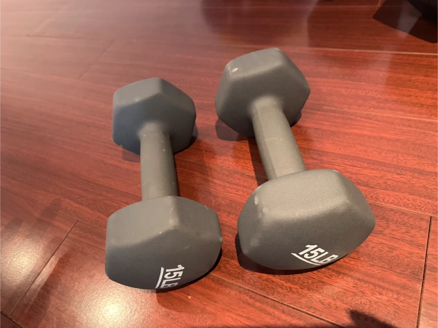 68Selling a pair of 15lb dumbbells. They are in great condition and perfect for your home workouts! Ready for a new owner to get some good use out of them