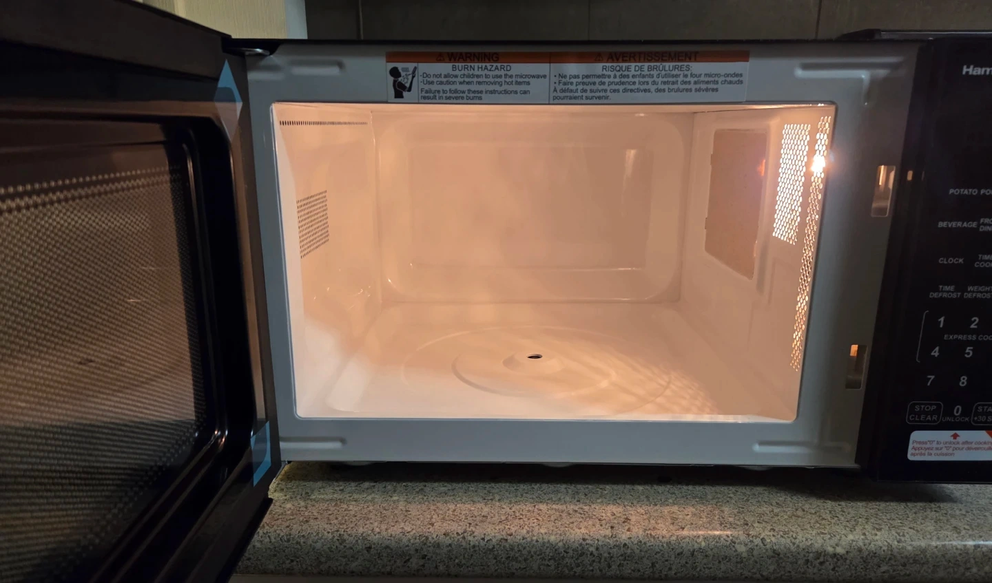Selling Brand new Hamilton Beach microwave in great condition! It's black and has a capacity of 0.9 cu ft. Dimensions are 48.2 cm x 27.0 cm x 36.0 cm. Includes the glass turntable and rotating ring inside, and comes with the original box