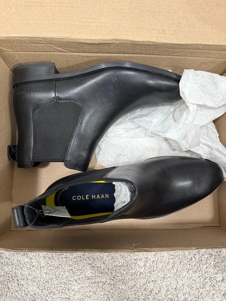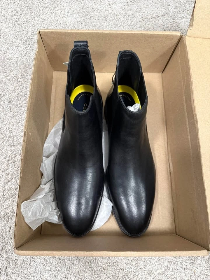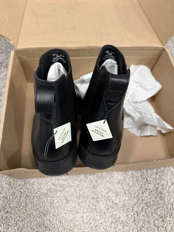 Cole Haan mens Hawthorne Chelsea Chelsea Boot in size 10.5, color Black/Black. These boots are water-resistant. Feel free to message if you have any questions!