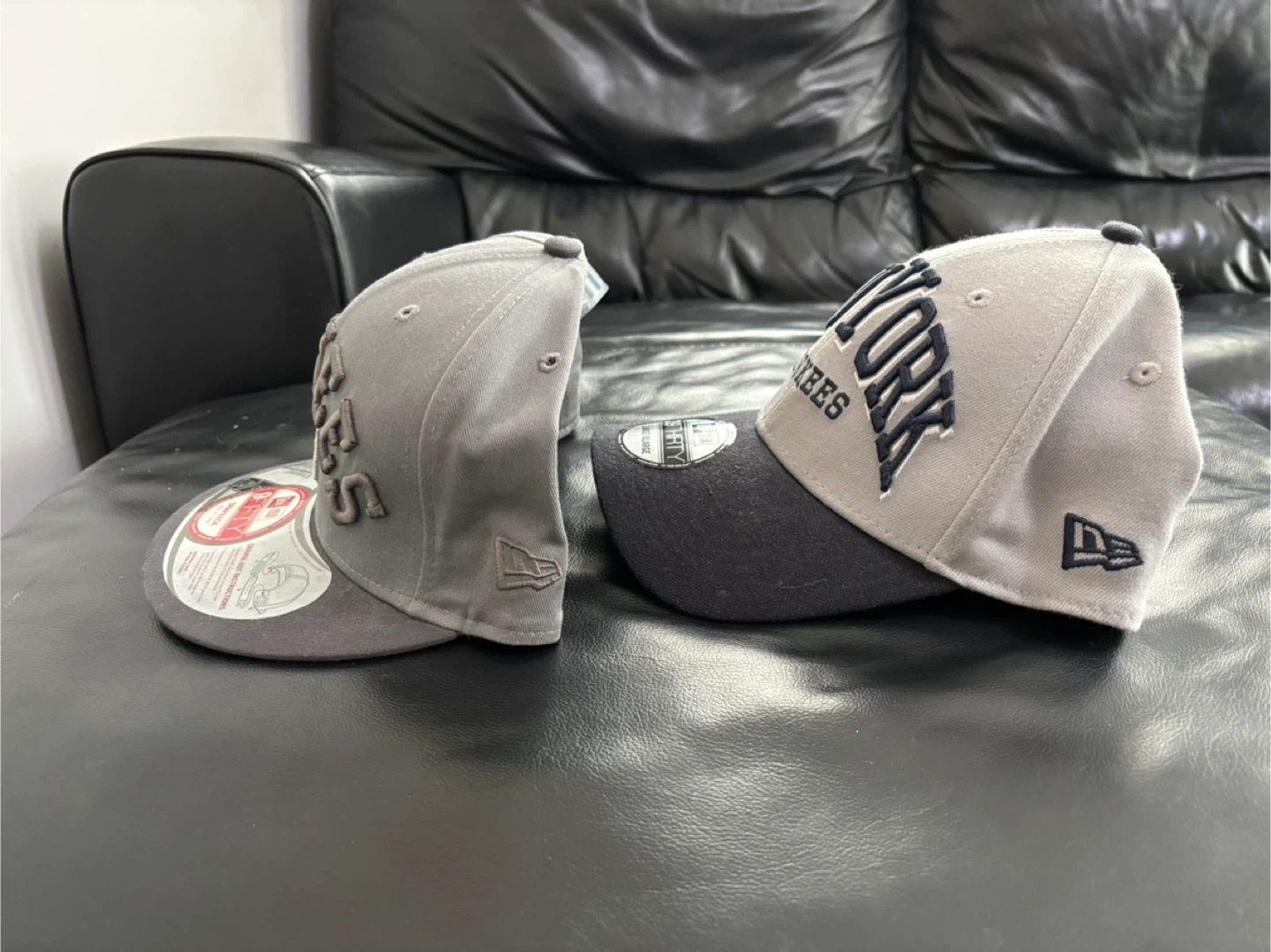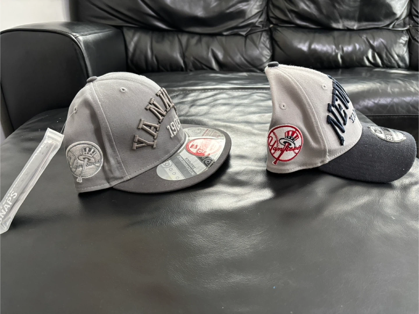 Grey and navy New York Yankees baseball cap by New Era. It's a 39THIRTY size Large-XLarge. Also includes a grey New Era 9FIFTY snapback Yankees cap with "1903" detail and interchangeable snaps.