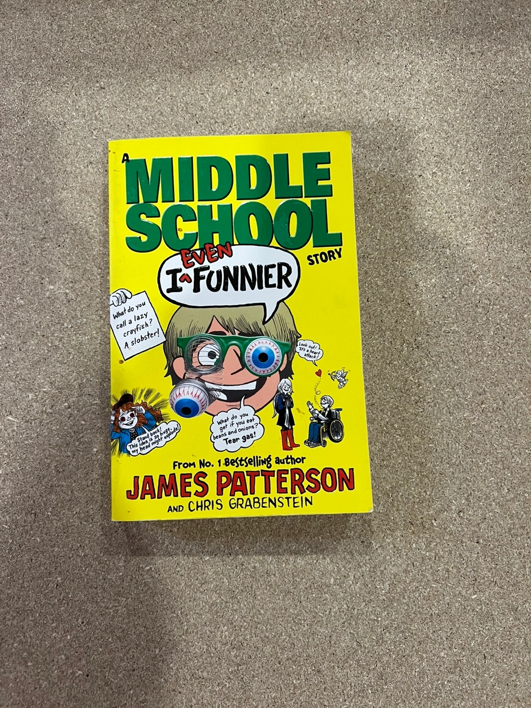 Selling the book 'Middle School: I Even Funnier' by James Patterson and Chris Grabenstein! It's a fun read for kids 9+