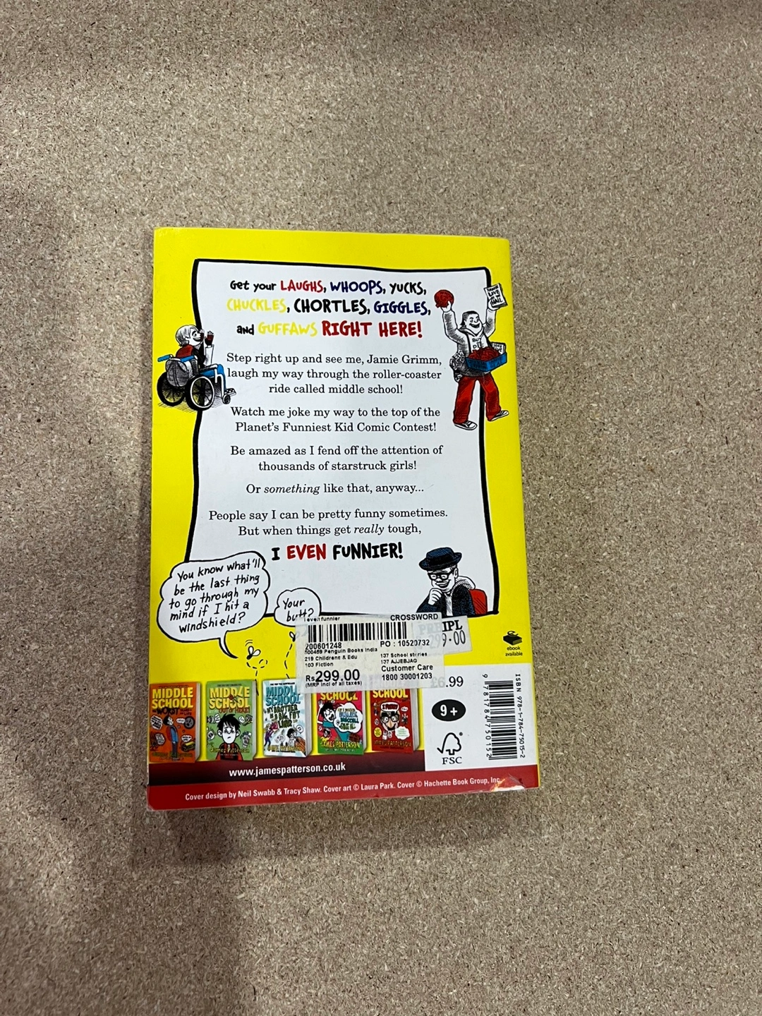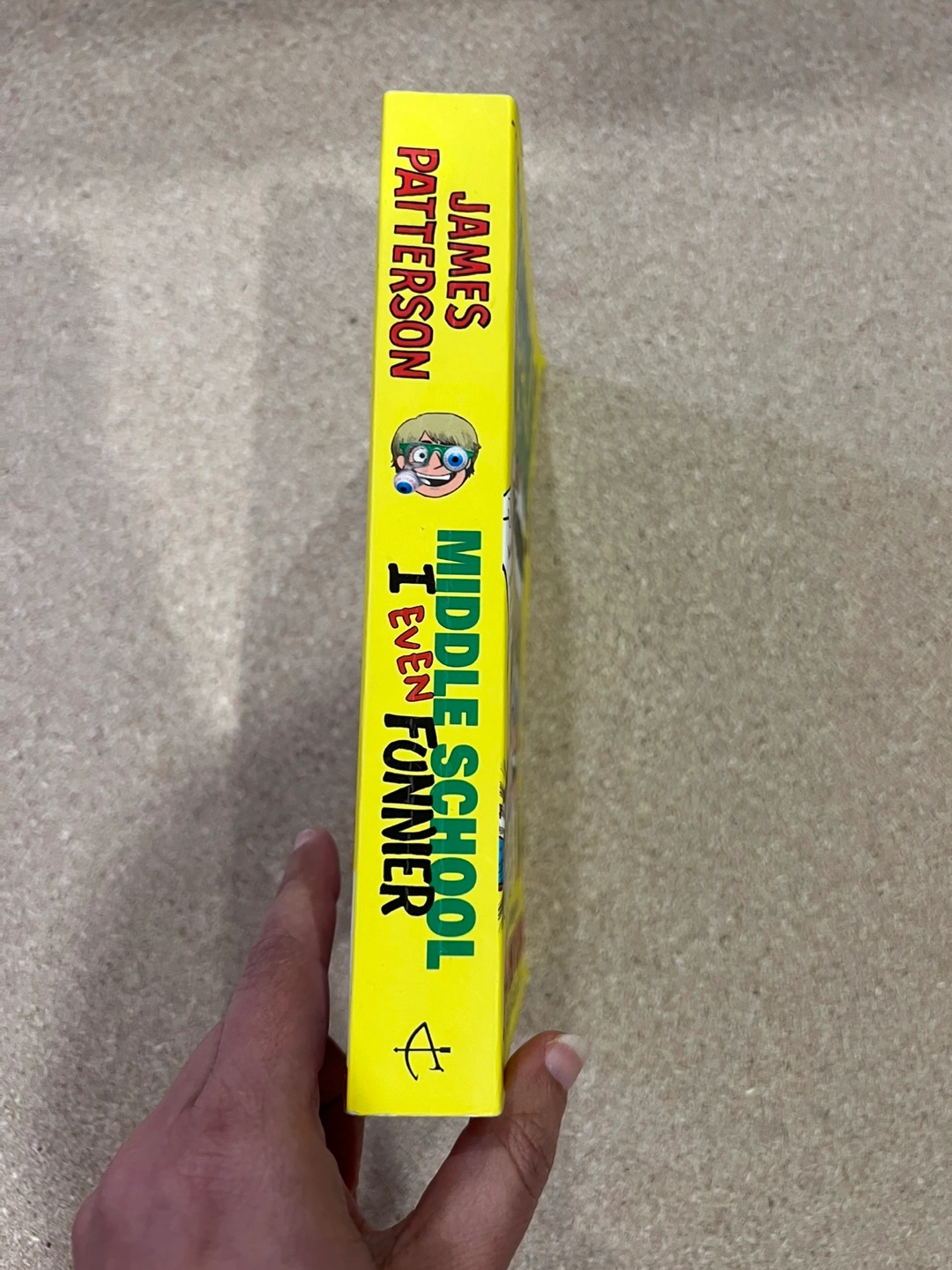 Selling the book 'Middle School: I Even Funnier' by James Patterson and Chris Grabenstein! It's a fun read for kids 9+