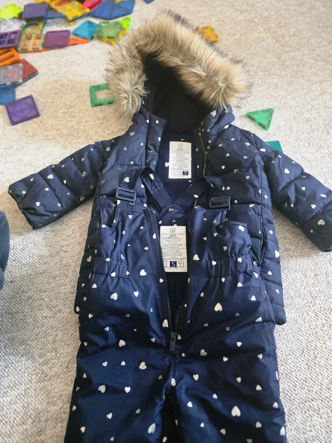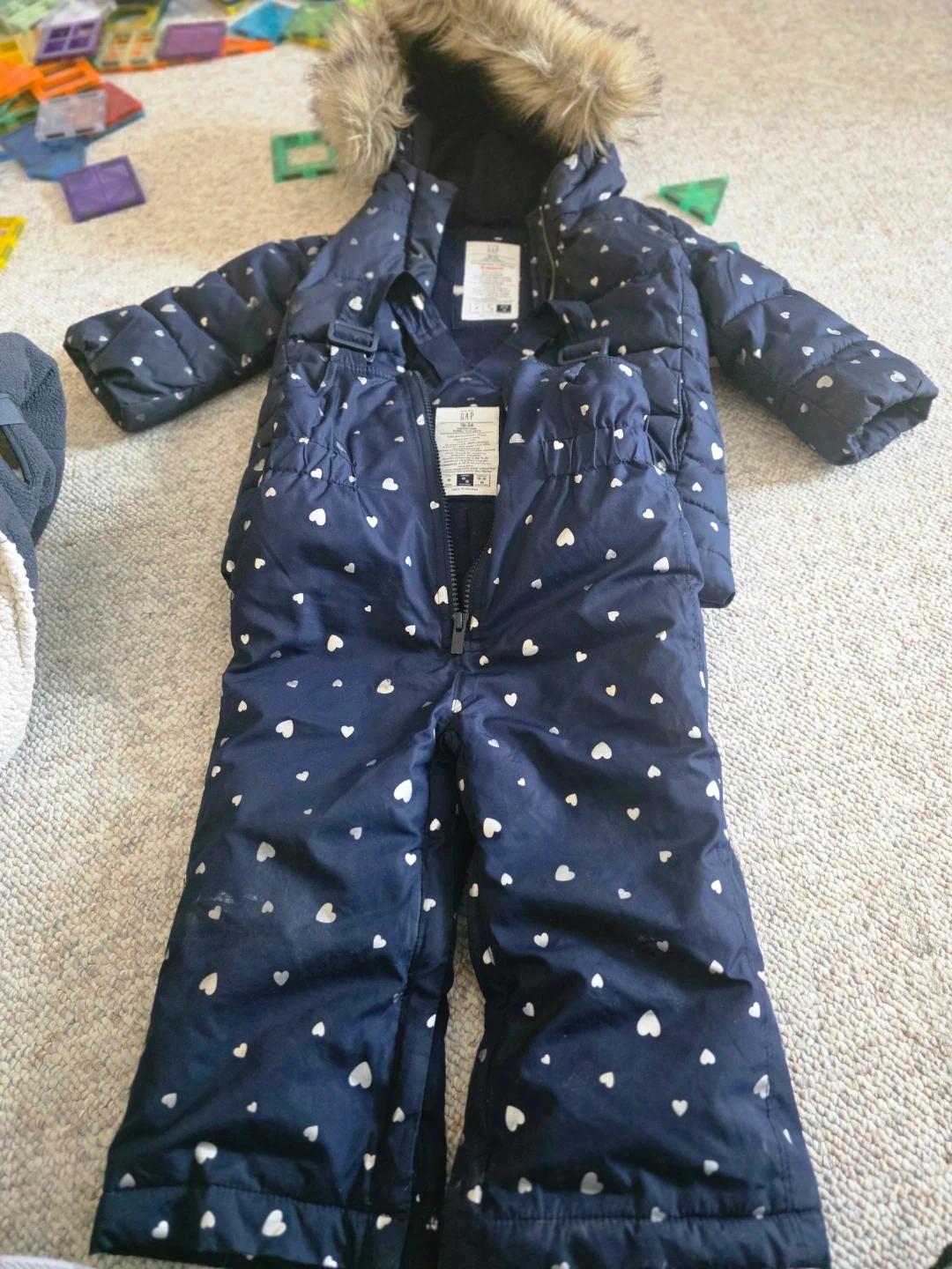 π Gap Baby Snowsuit set 18-24 Months Navy Heart Print