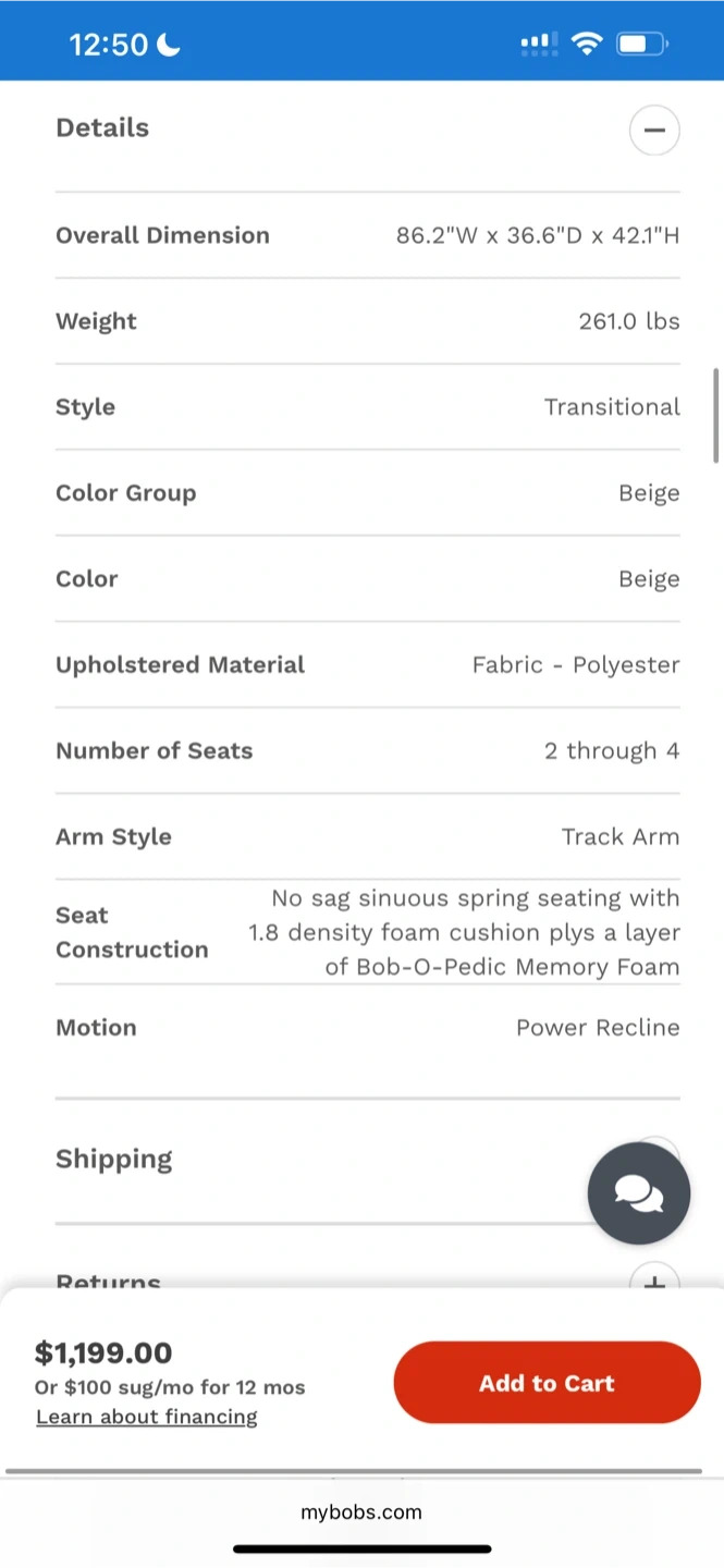Bob's Furniture Reclining Sofa