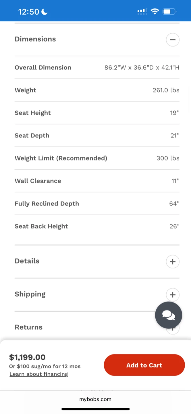 Dimensions: 86.2"W x 36.6"D x 42.1"H