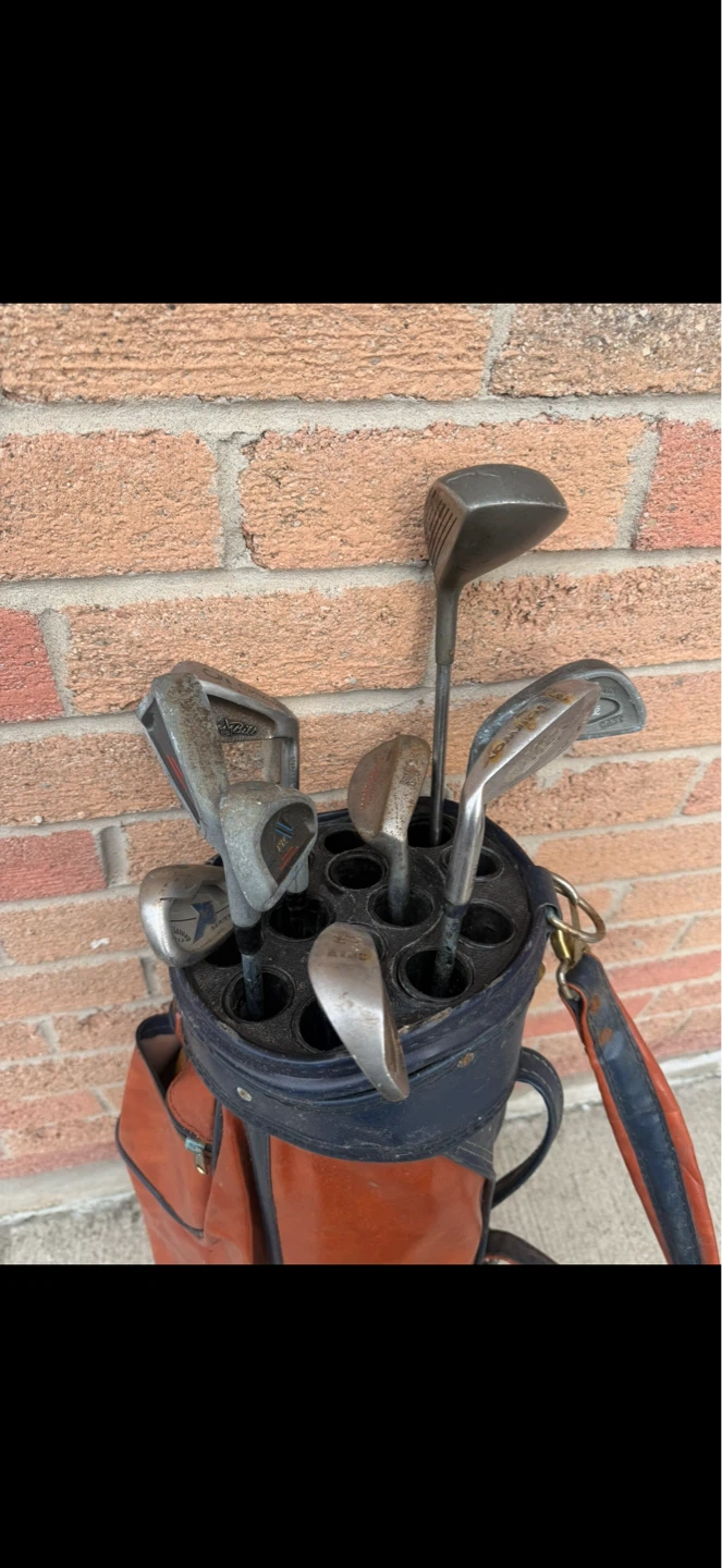 This Golf Set features 9 Golf Clubs, Golfing Bag, and Lots of zippered pockets and storage in the golf bag, has extra golf tees and golf pencils added inside the pockets