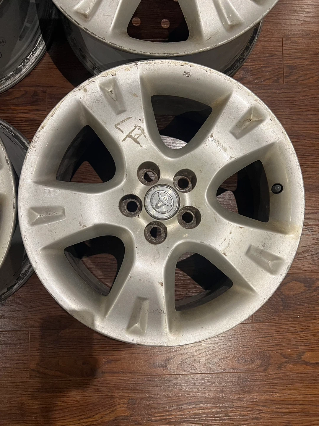 25brand: toyota rim size: 16 inch rim width: 6.5 inch bolt pattern: 5x100 mm i am sell a set of oem toyota rims that i used for toyota corolla. they are 16inch aluminum rims. no bends or cracks. no rust or corrosion, little curb rash