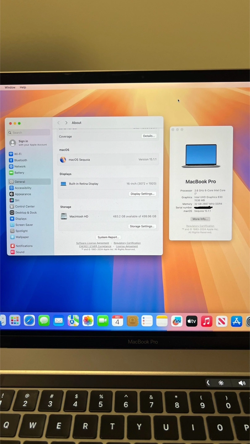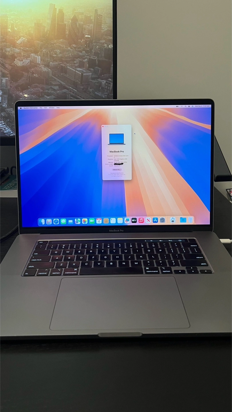 44MacBook Pro 16 inch 2019 32 GB ram 500 GB storage 6 core intel i7 Intel graphic card 630 Mild scratches on the shell