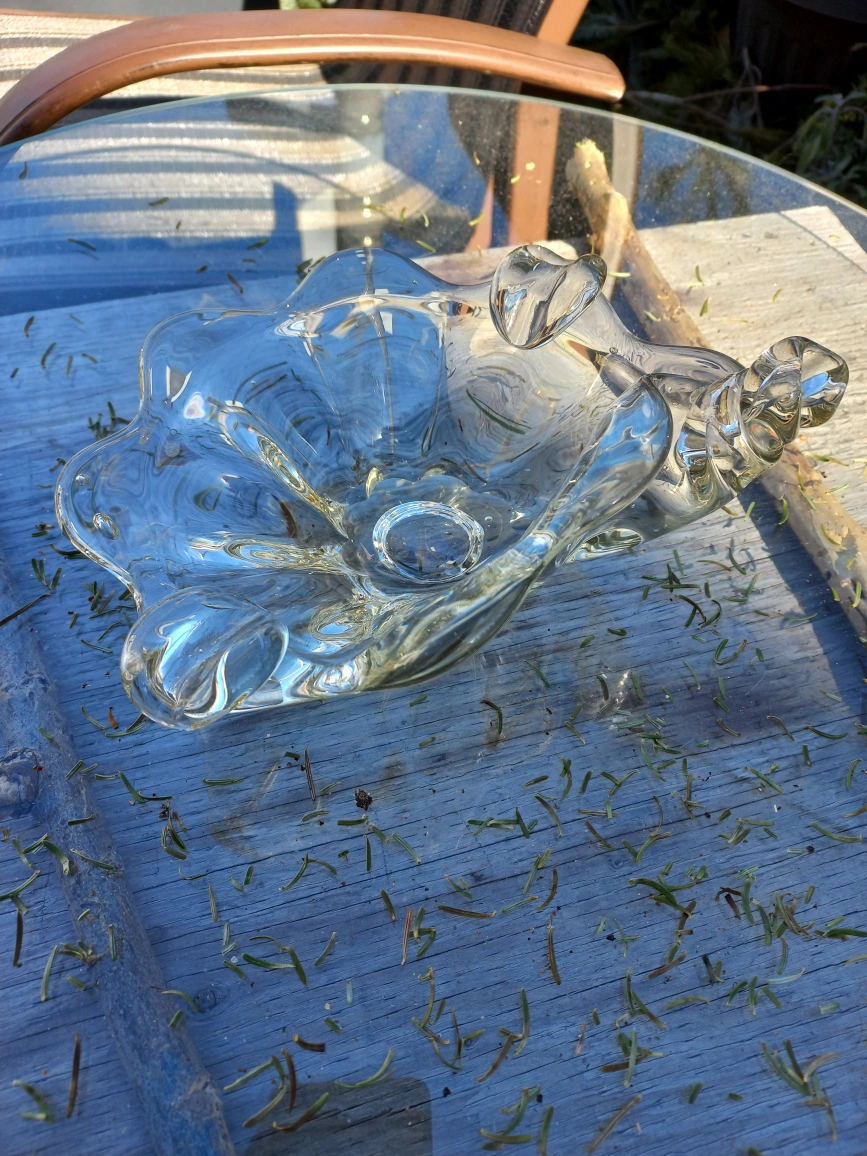 Hand blown art glass guessing Venetian. vintage but mint condition this was intended for ashtray but can be candy dish etc.very thick and heavy glass.