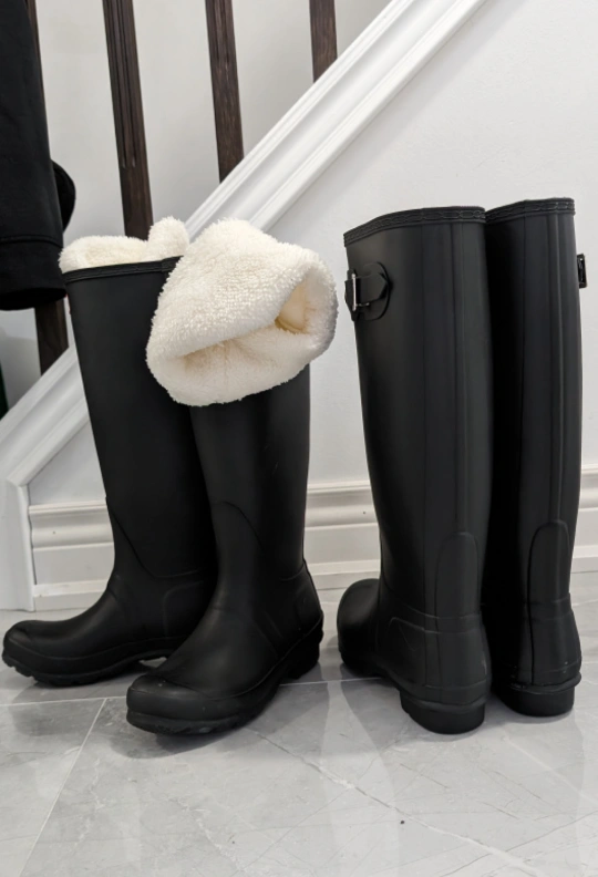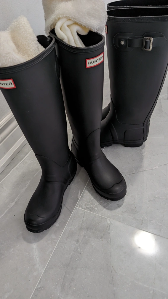 Out of the box. Two knee-high Hunter boots for sale. You can buy one or you can buy both pick up only.