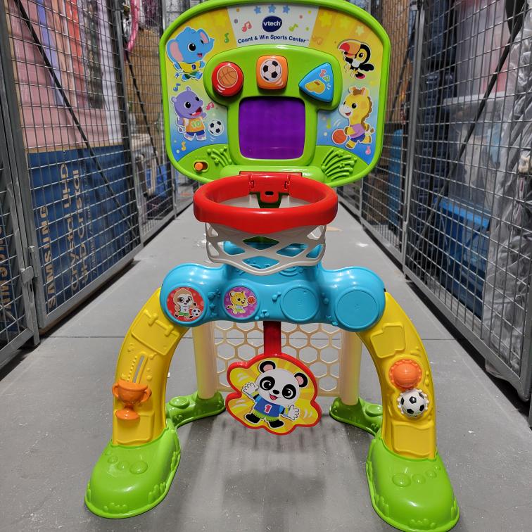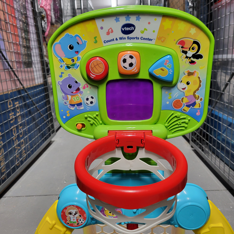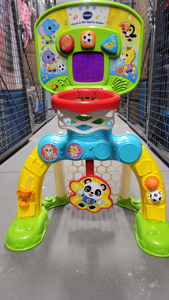 379V-Tech Sports Centre for toddlers (12 months to 3 years) -soccer and basketball modes -adjustable height for basketball -music -counts score -comes with 2 balls Pickup at Bayview and Sheppard only