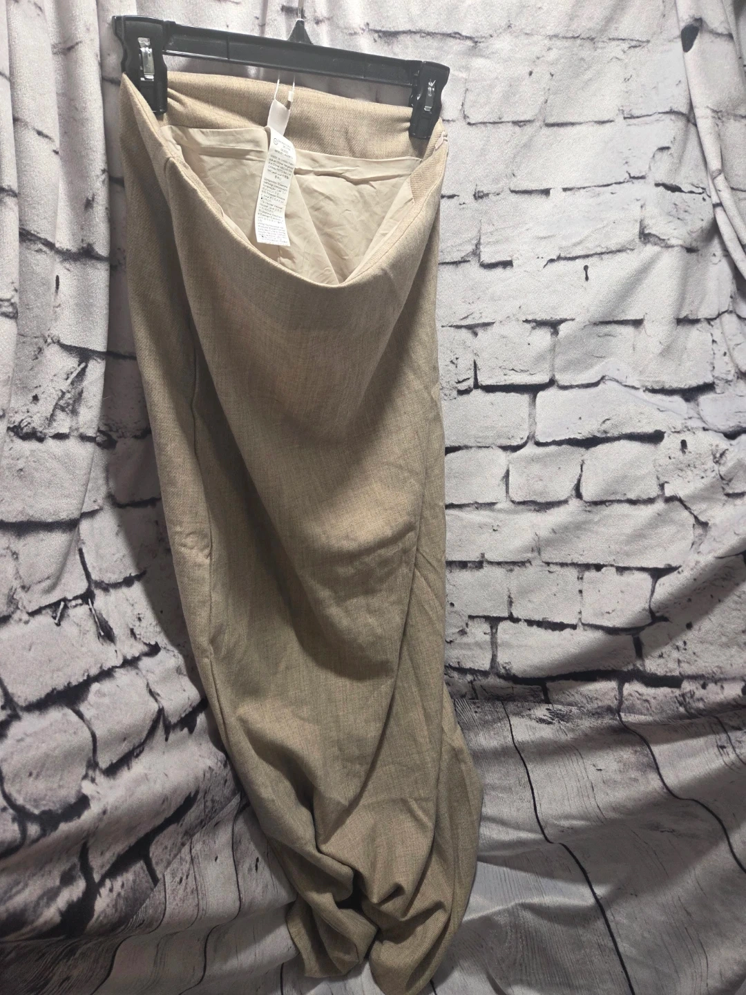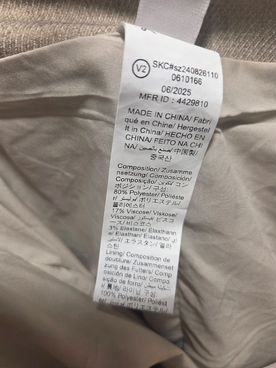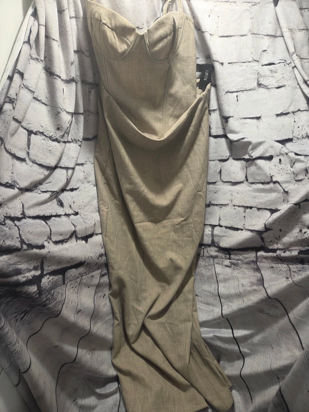 This is a beige Musea corset dress. It's made from a linen blend with 80% polyester and 17% viscose. The lining is 100% polyester. This dress is perfect for a summer outing!