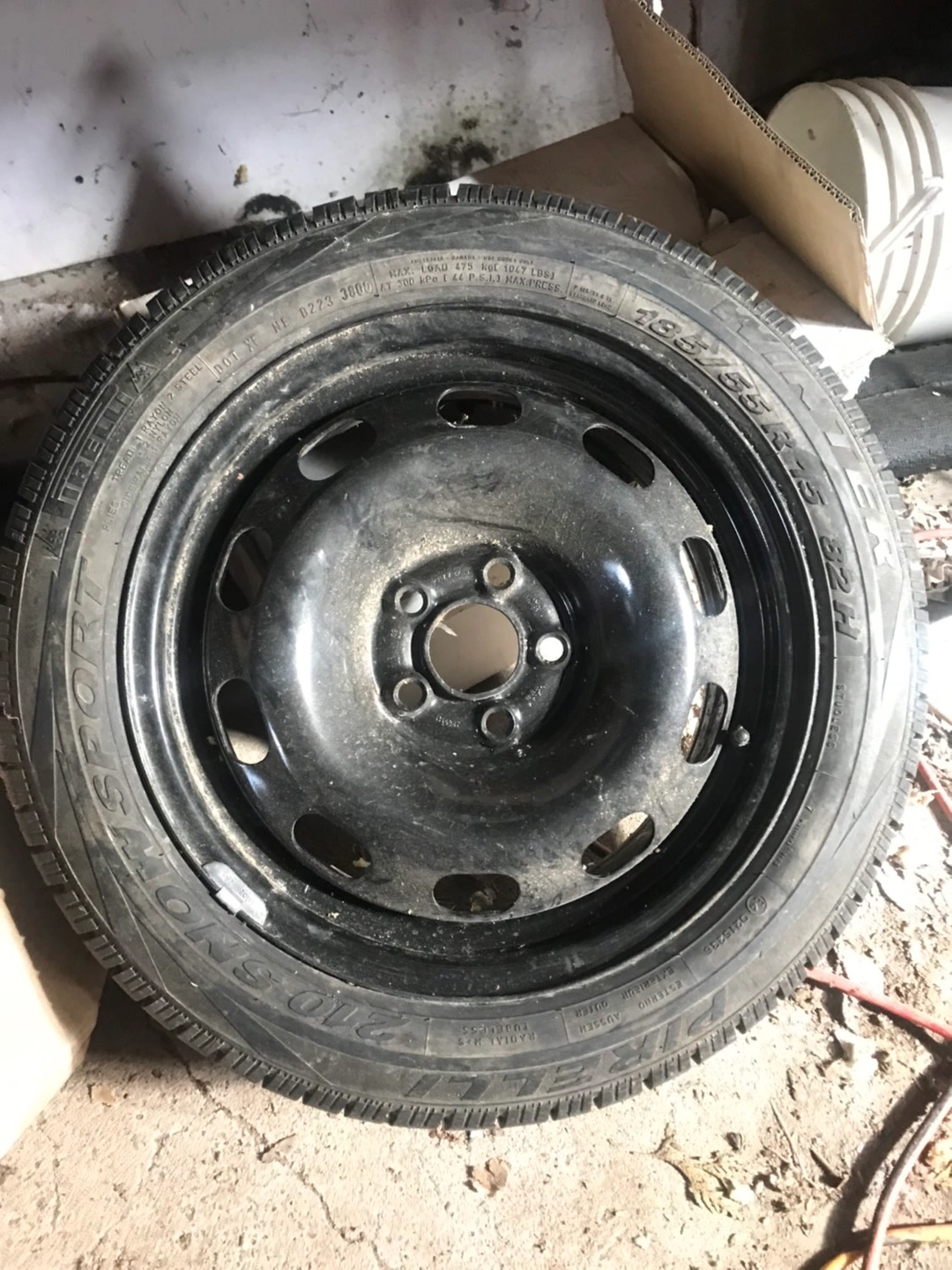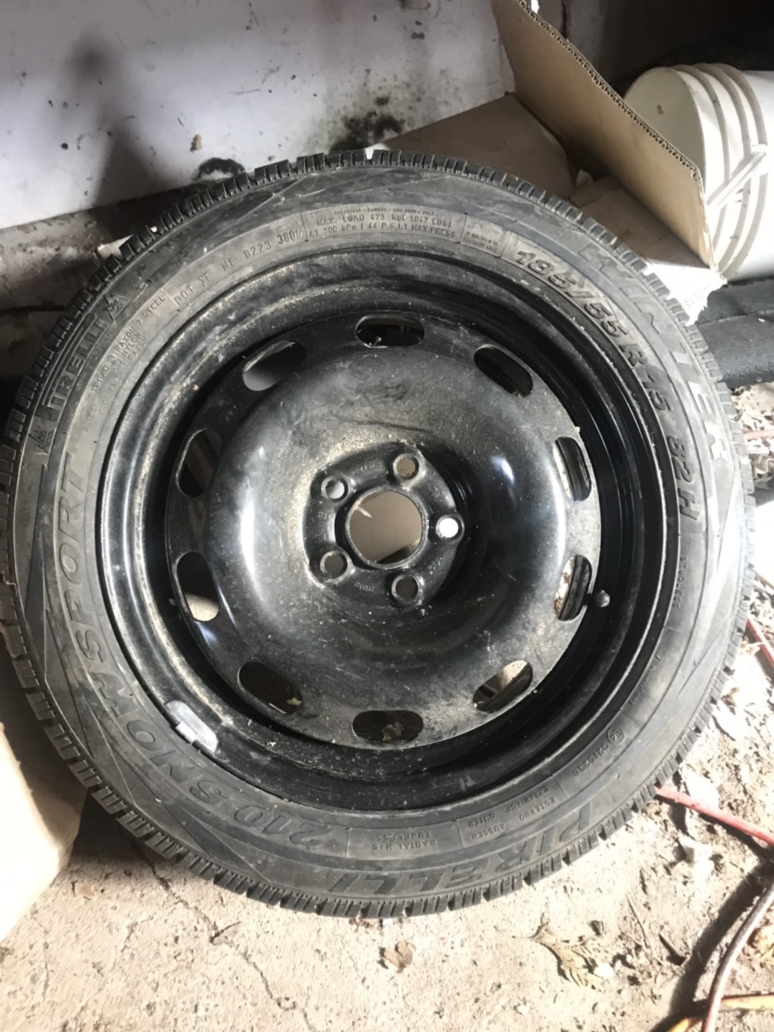 Set of four Pireli snow tires on steel rims. 185-55-R15. Lots of tire tread remaining about 75% remaining tire tread.
