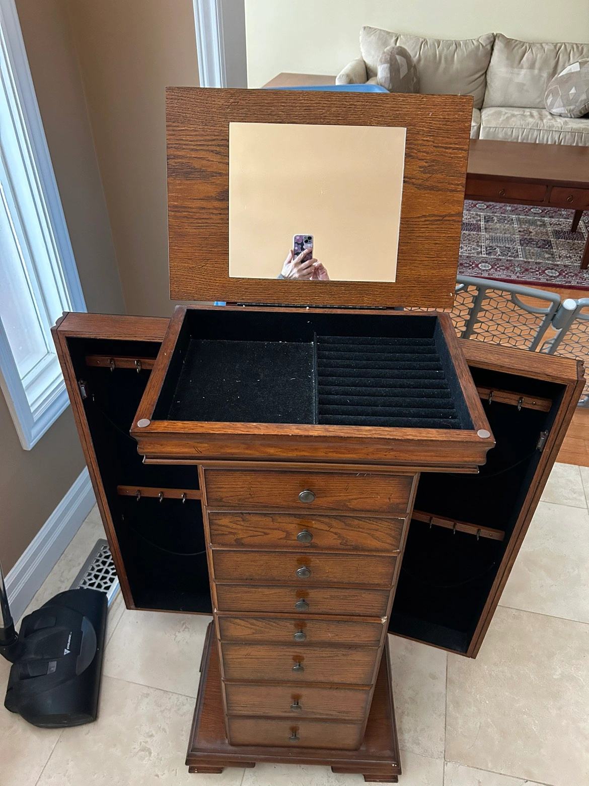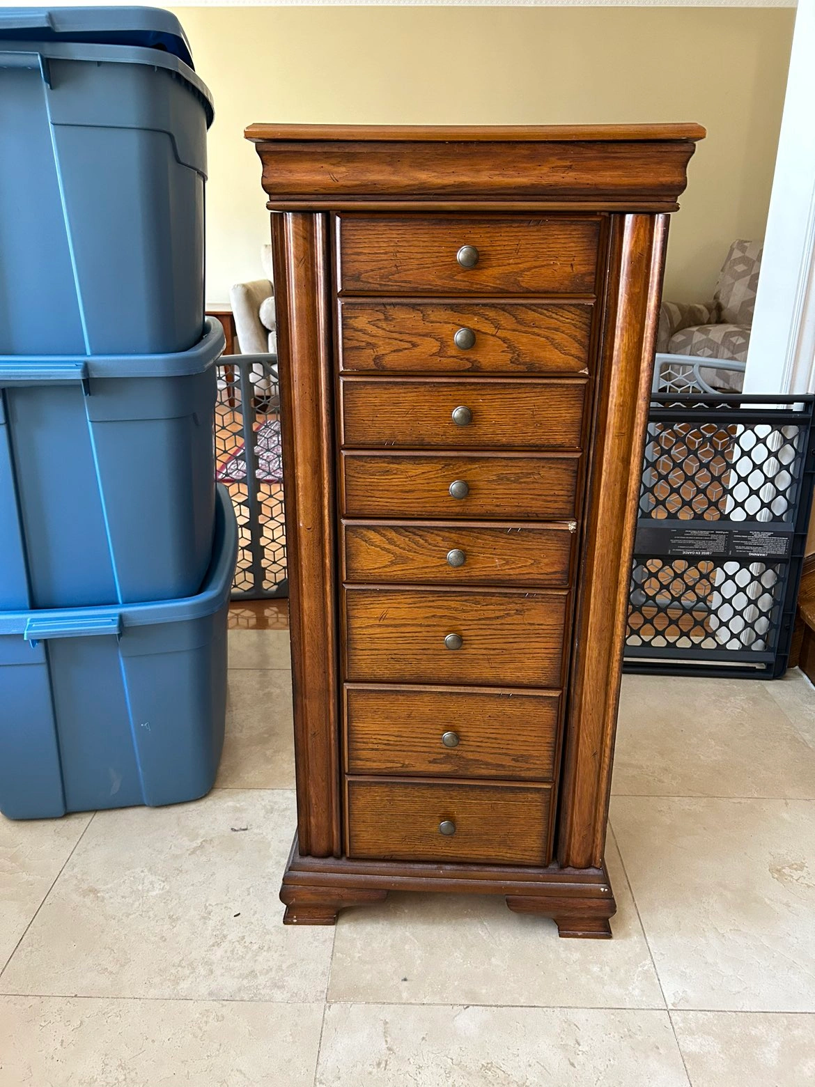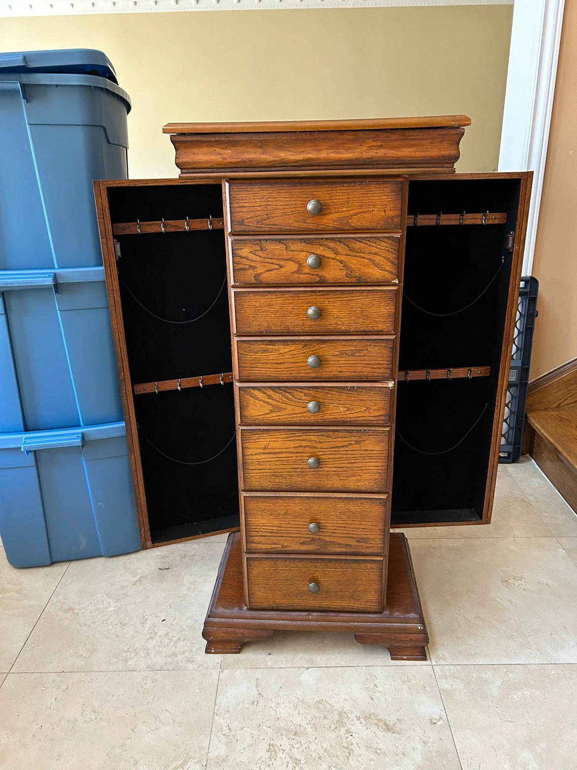 Buy & SellJEWELRY CHESTJEWELRY CHEST$60Has a small chip otherwise beautiful accent piece of furniture.DimensionsHeight: 43” Width: 19” Depth: 13”WHERE TO MEETWoodbridgeView MapSELLERPeggyWoodbridge Centre100 reviews1 chats·1 favorites·60 viewsSEND CHAT TO SELLERHi Peggy! I’m interested in your listing.Hi Peggy! I’m interested in your listing.Get the Karrot app to chatSign In to chat