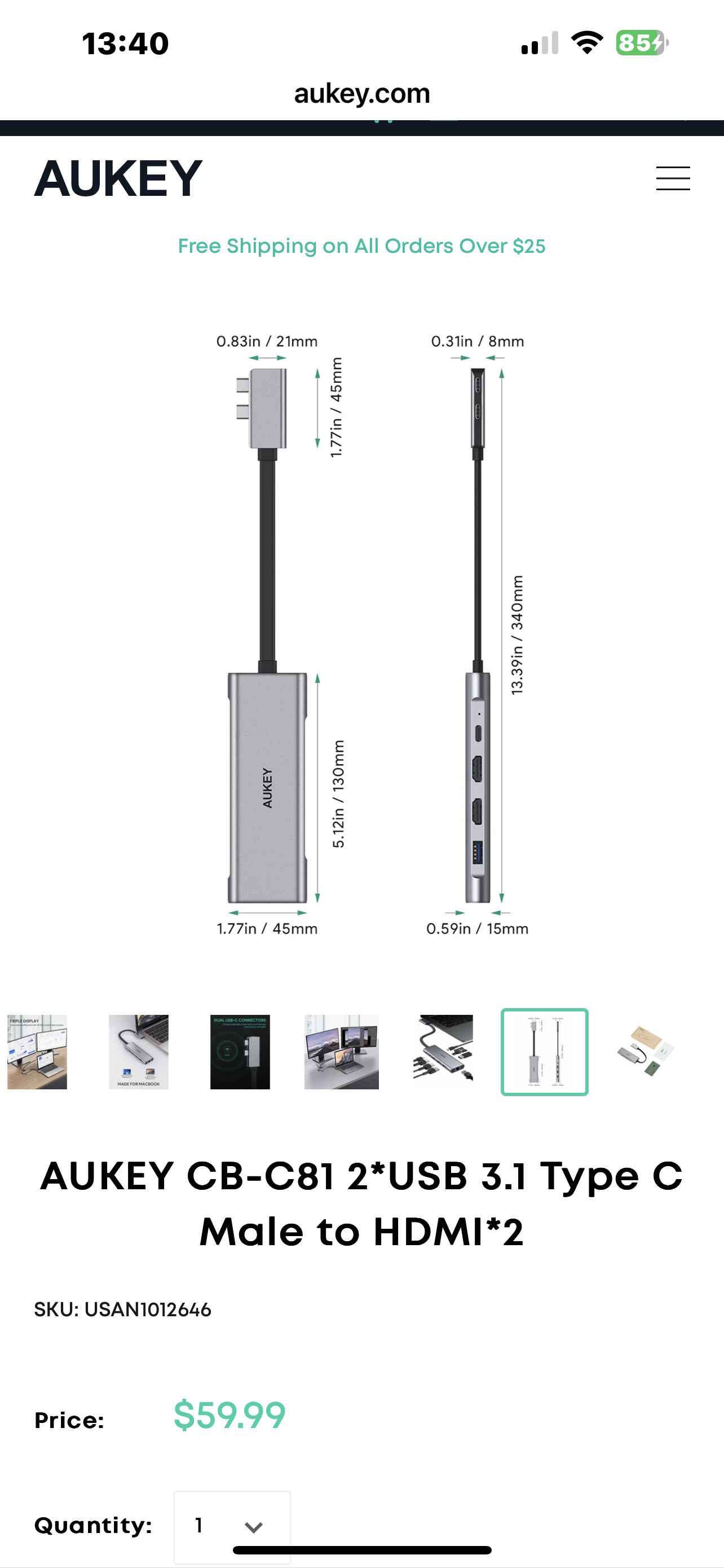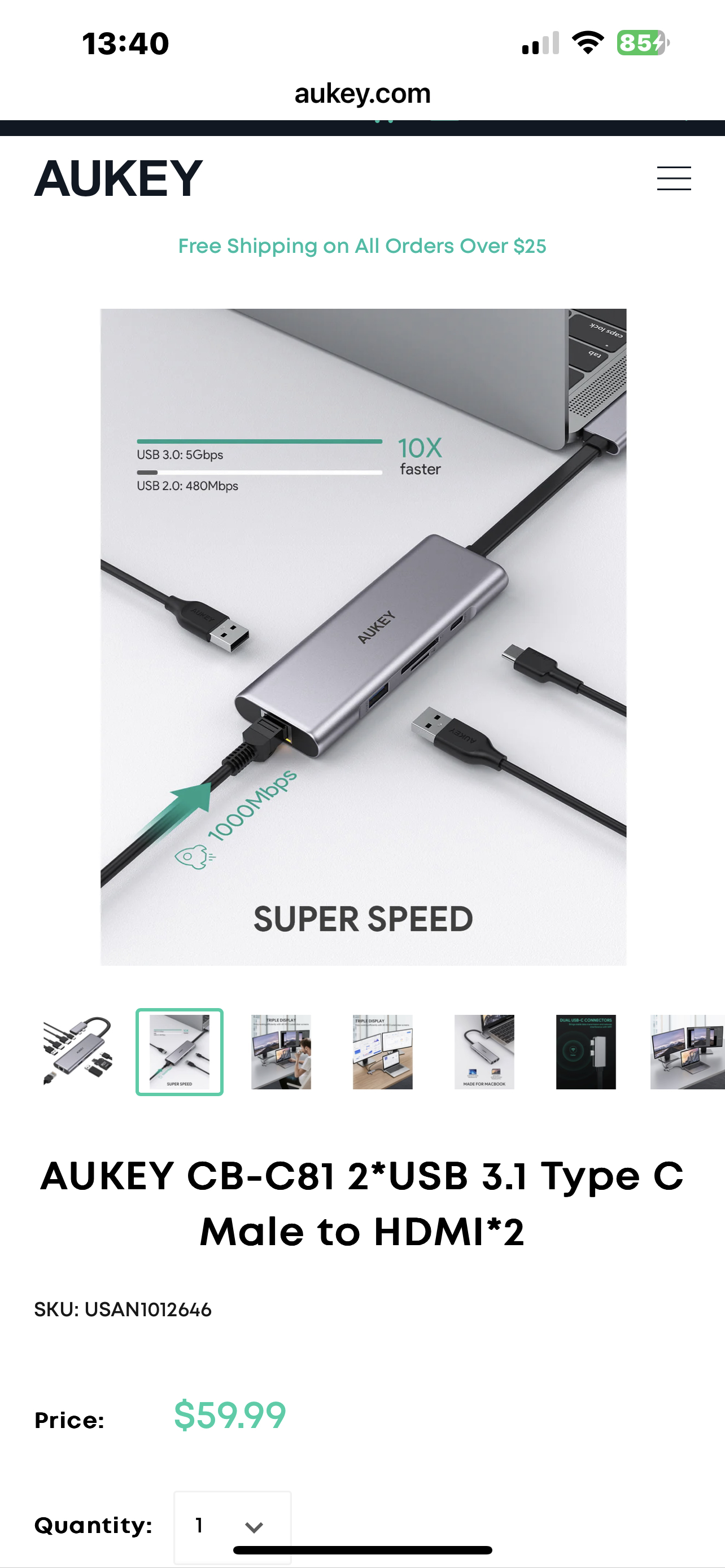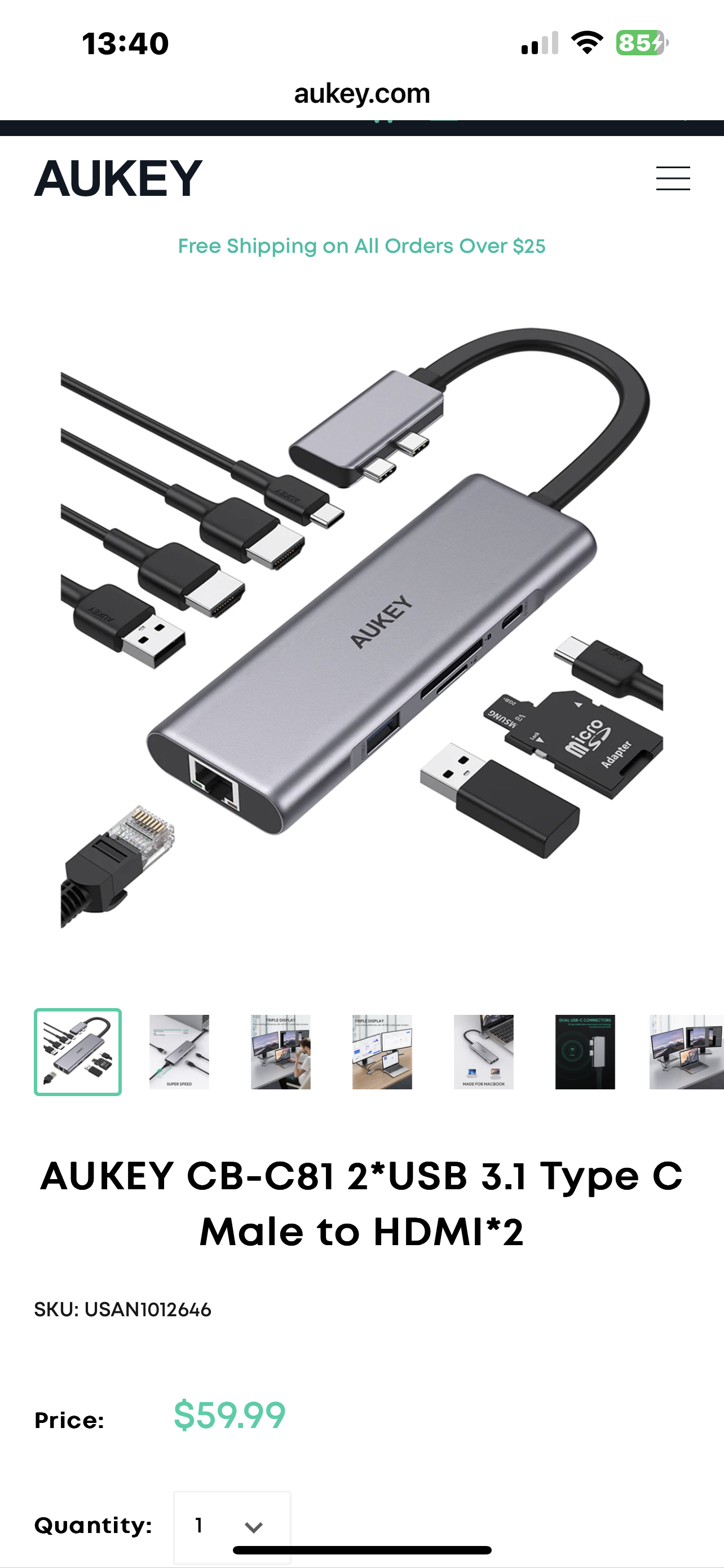 AUKEY CB-C81 2*USB 3.1 Type C Male to HDMI*2 🌟barand new in box🌟 For more information, please copy the title to google, thank you. Price is firm,💡Not reply for lowball !! 💡No meet,No delivery ,house Pickup only by Coquitlam. Thanks 💡 still up means available. First come, first serve.only hold for full payment emt No return or exchange for non defective item。 🔥Brand new sealed items can only be opened after payment has been made. Thanks