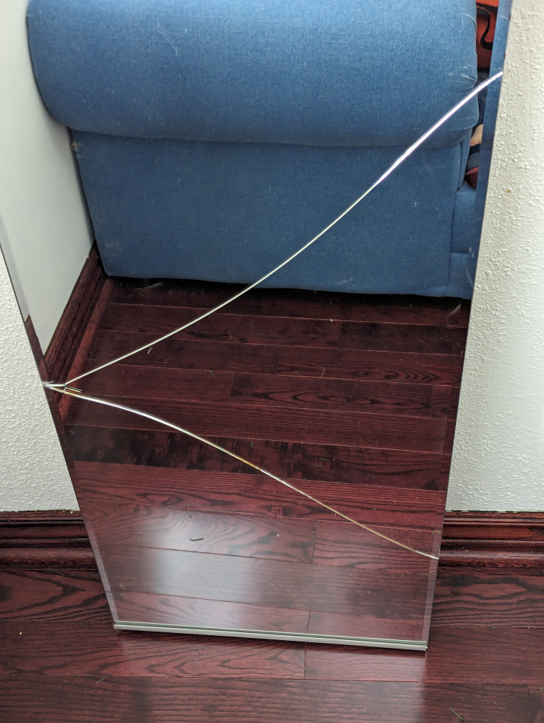 Broken mirrored closet door. ๐ It's been broken for over seven years so is no longer unlucky ๐ Hoping a creative person can reuse it for a project. Measures approximately 18" x 6.5'. Porch pickup