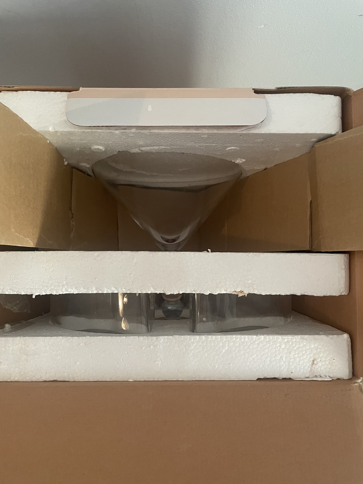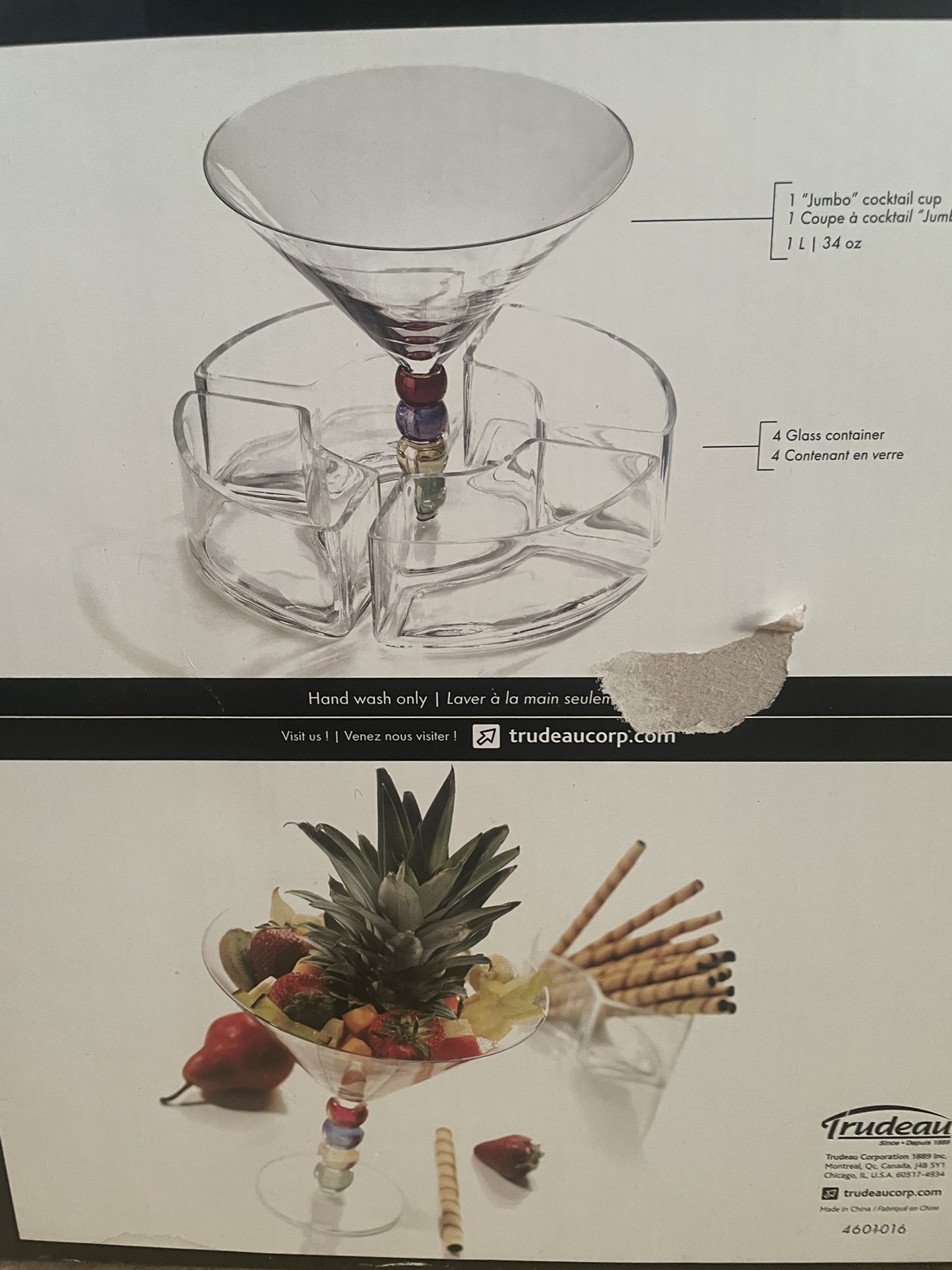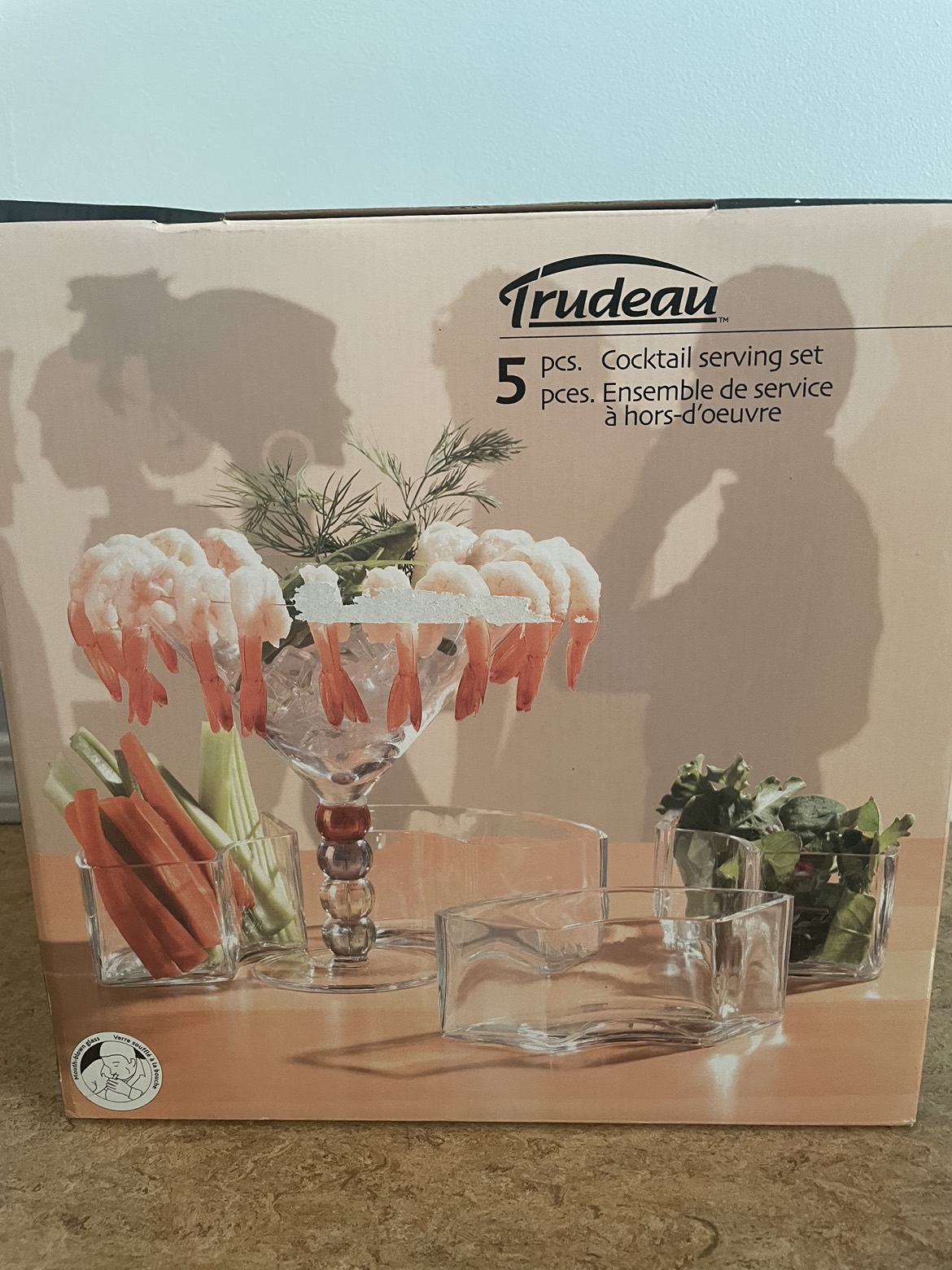 Price drop! This stunning set will add some glam and wow factor to your next event! Brand new, still in box! 5 piece glass cocktail serving set. 1 jumbo martini serving cup and 4 semi-curved containers encircling it. The cup is 1L/34 oz Versatile because you can serve anything in it and use one or more of the pieces separately. Mouth blown glass