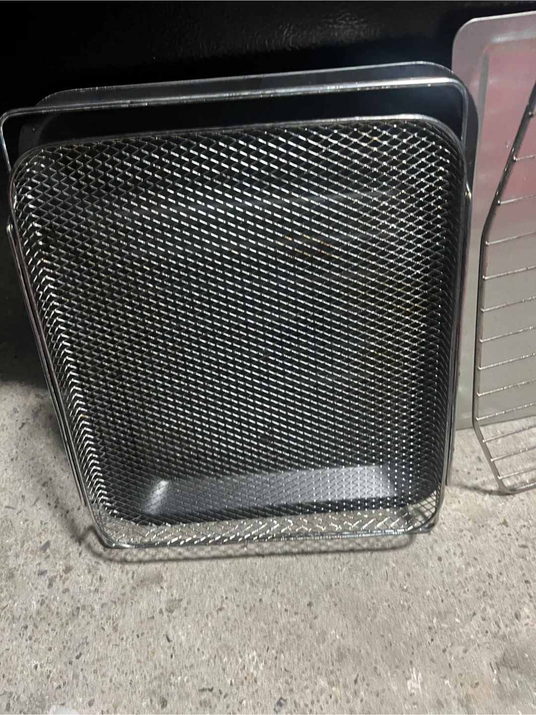 This is a COSORI toaster oven with air fryer capabilities. It comes with a wire rack, a crisper tray, and a baking pan. It's a versatile kitchen appliance for toasting, baking, broiling, and air frying.