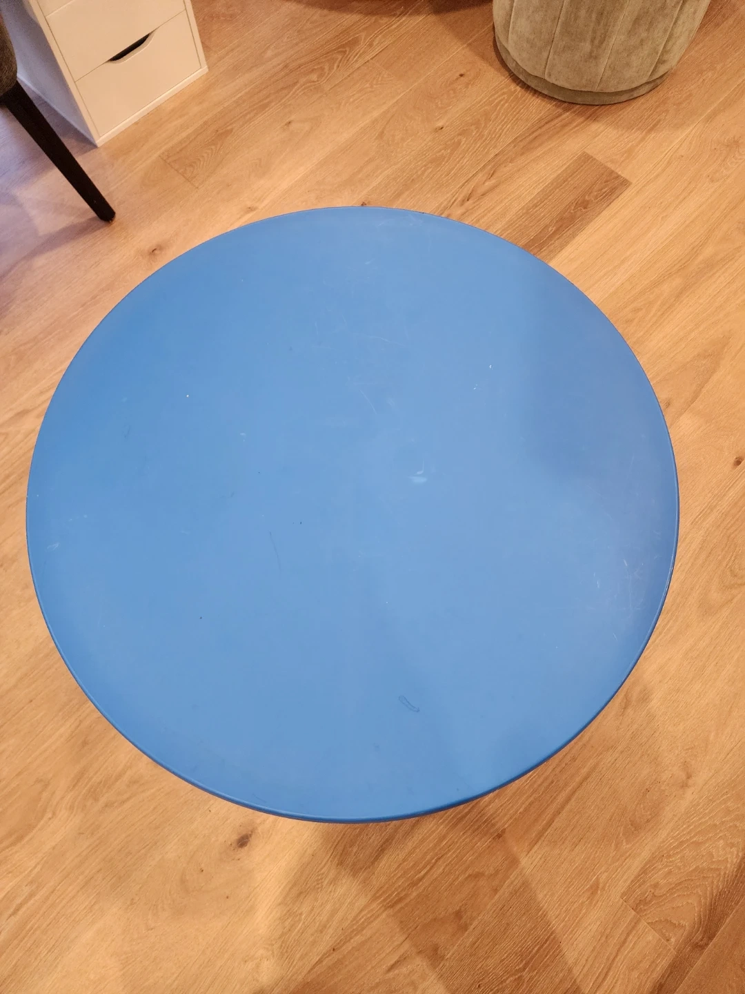 A cute blue children's table with white chairs! Perfect for arts and crafts, snack time, or just a fun place for the little ones to play