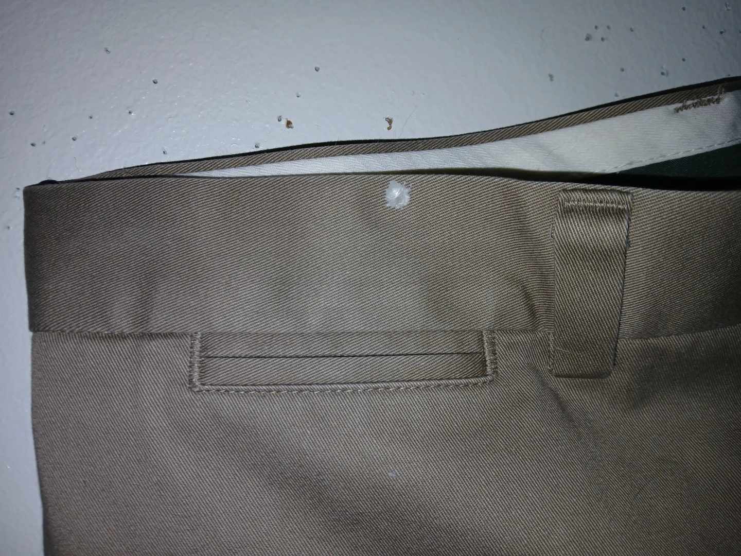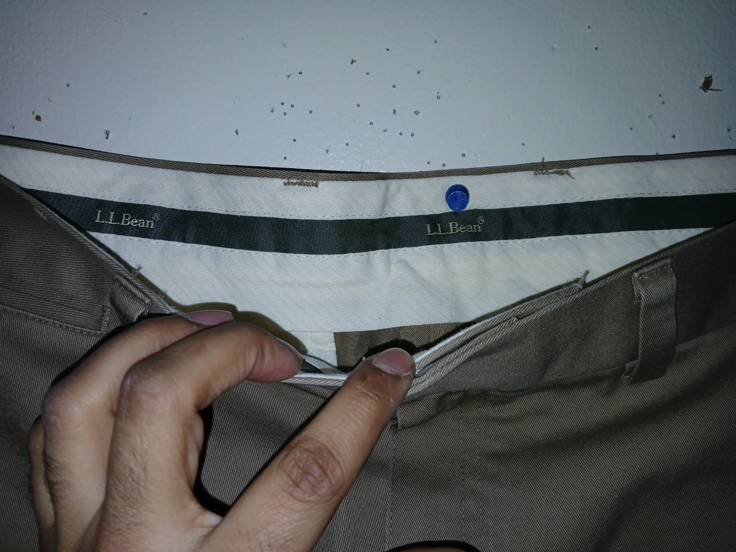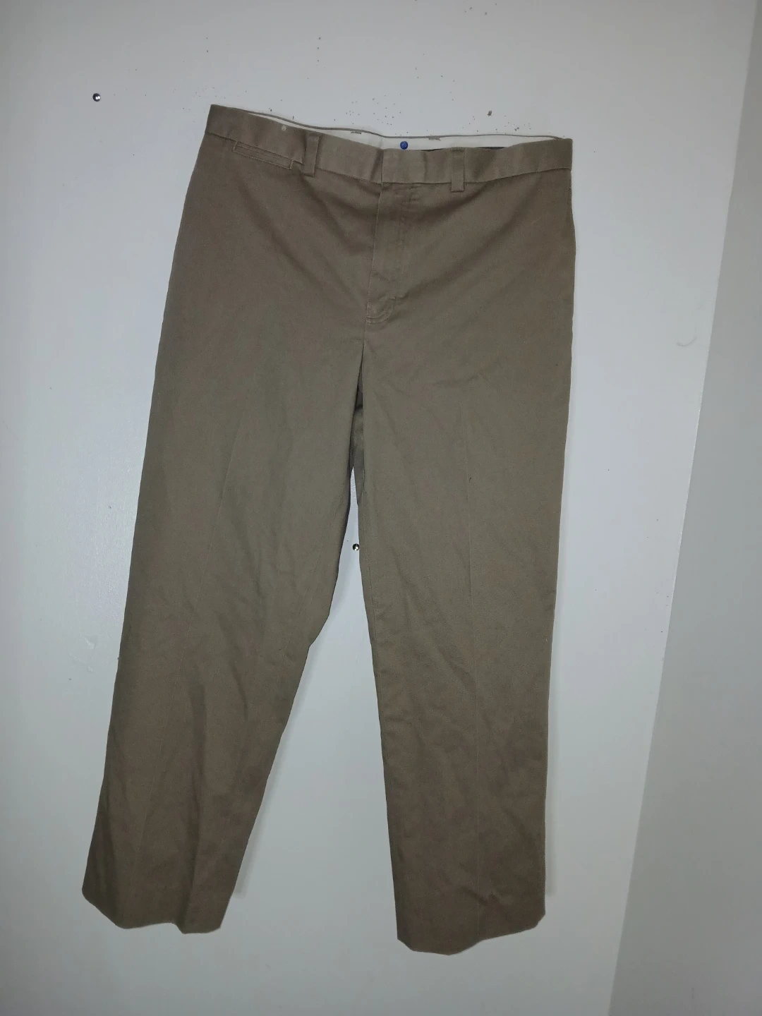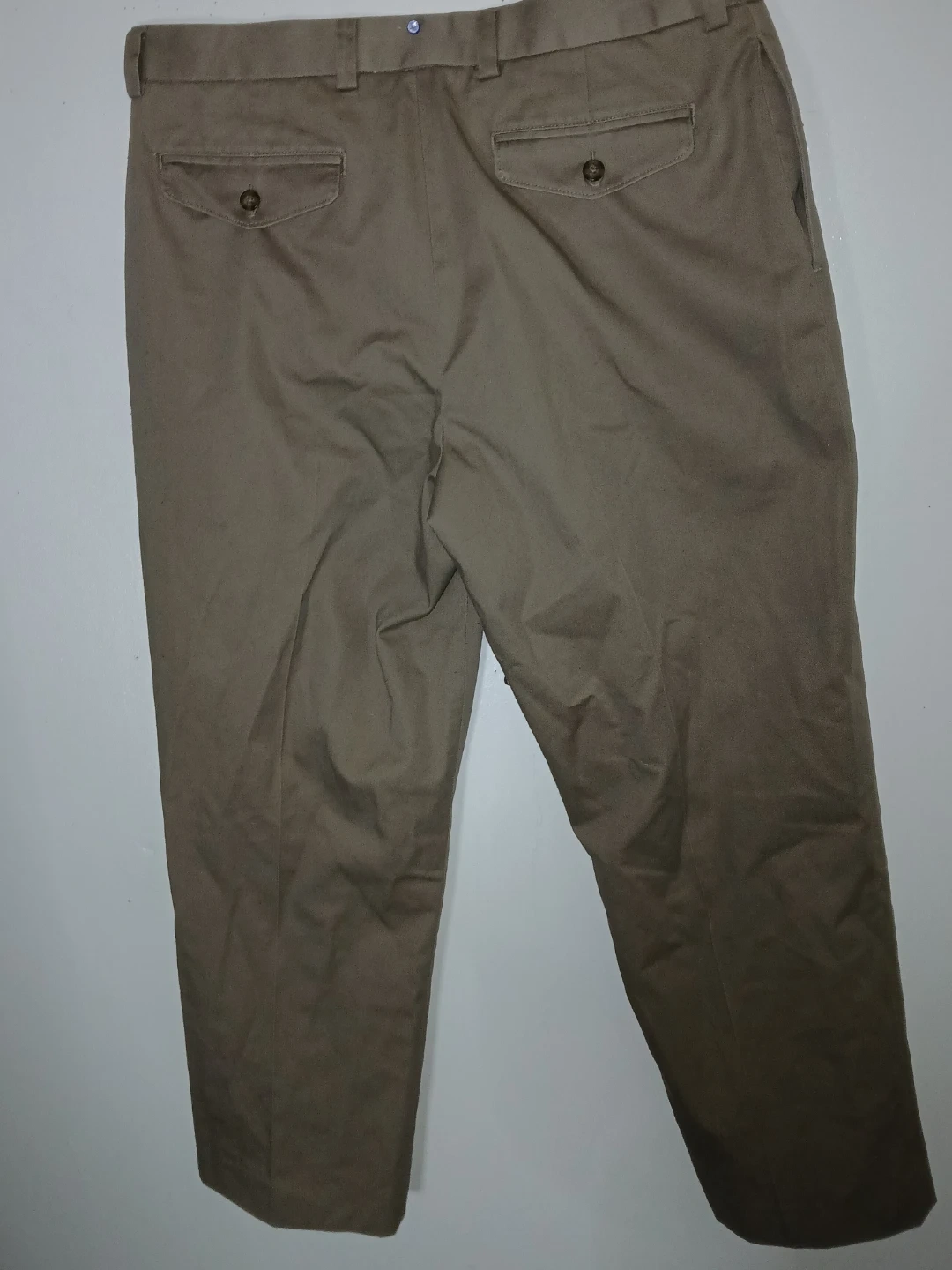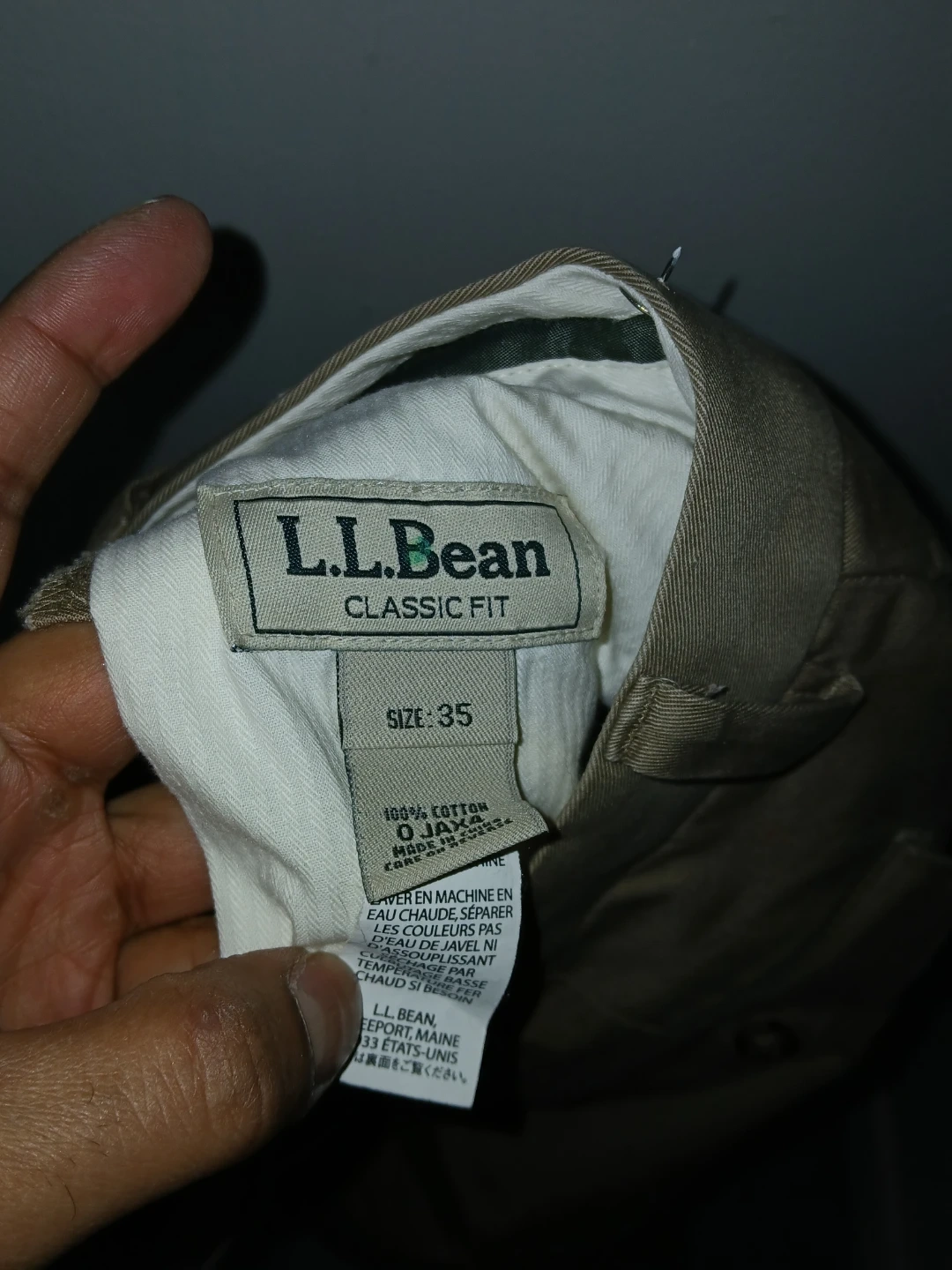 Men's L.L.Bean khaki chinos. Classic twill fabric. Button and zip fly closure. Two back pockets with button closures. Size 36 waist, 30 inseam. These pants are suitable for everyday wear.