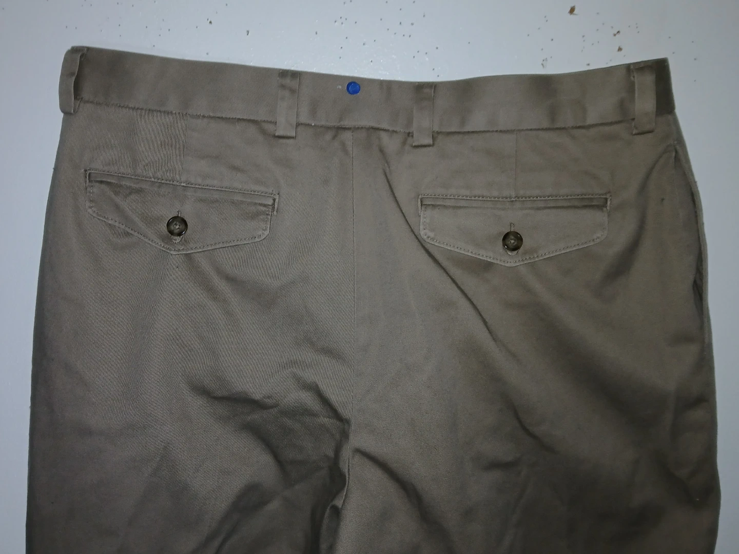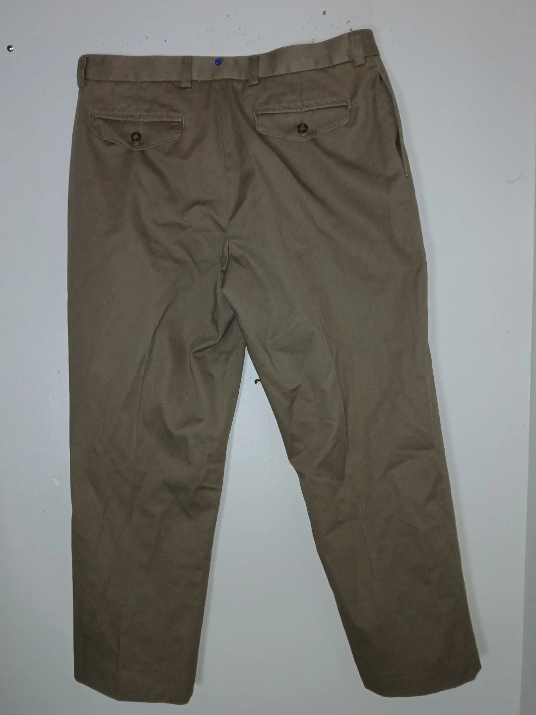 Men's L.L.Bean khaki chinos. Classic twill fabric. Button and zip fly closure. Two back pockets with button closures. Size 36 waist, 30 inseam. These pants are suitable for everyday wear.